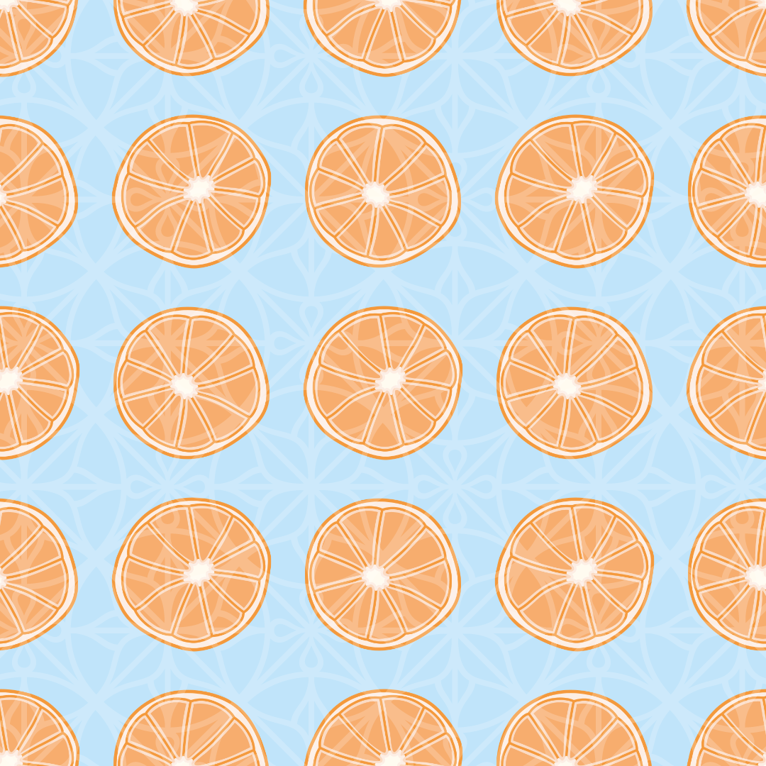 Orange slice seamless vector pattern. Doodle citrus illustration background.