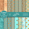 Digital Paper Pack, Turquoise & Orange Beach Scene, Summer Fun , Digital Backgrounds, Decorative Paper, Scrapbooking, Craft Paper