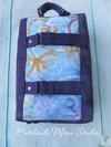 Made with hand dyed, batik and commerial fabrics. Pouch measures 6 1/4” high x 9 3/4” wide x 3” deep.