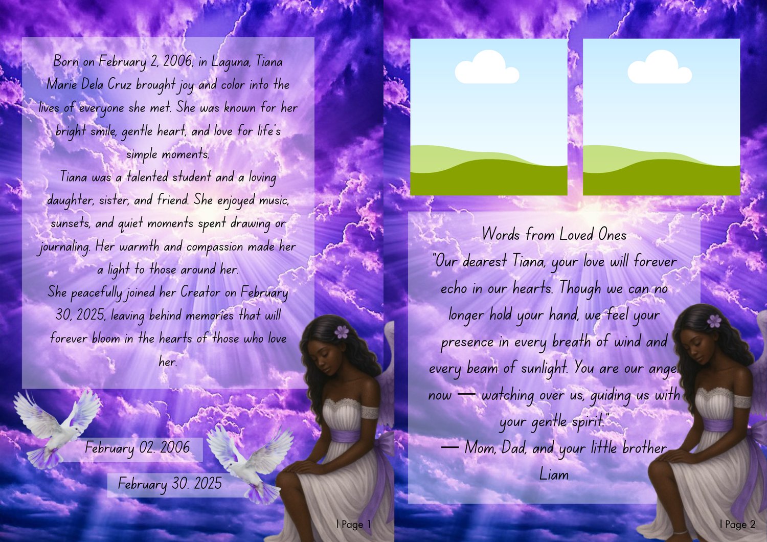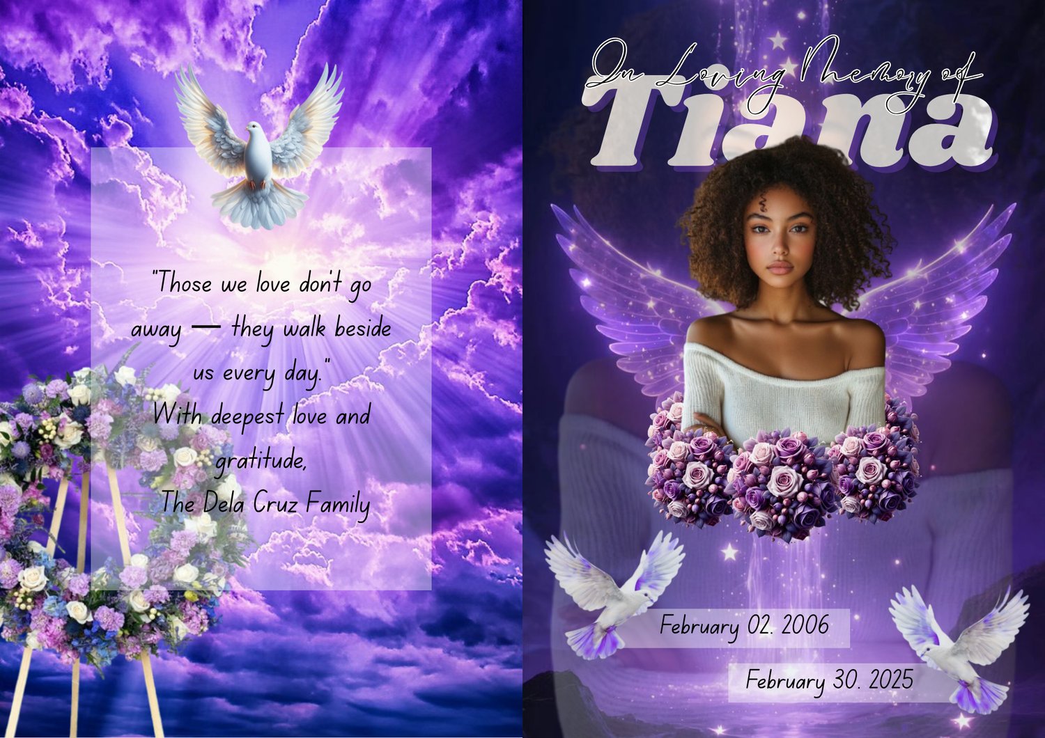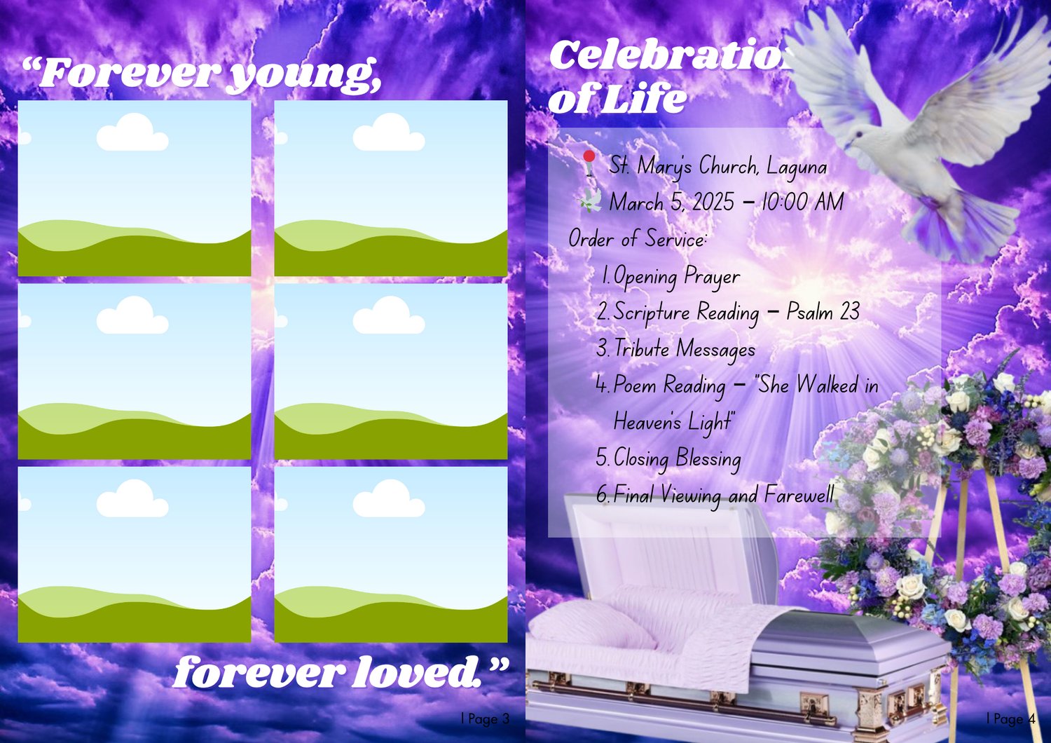 Preserve their story with love and grace. This purple obituary magazine template is more than a program β itβs a lasting remembrance of a life filled with beauty, light, and love.