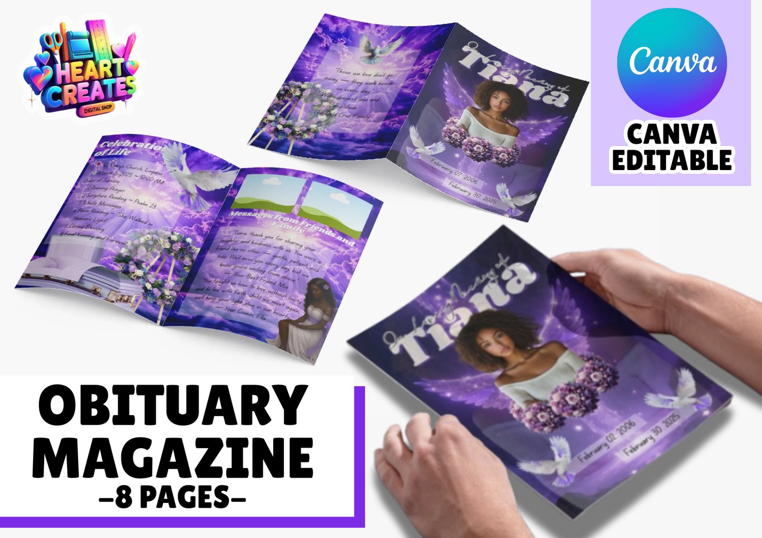 - 8-page editable obituary magazine layout