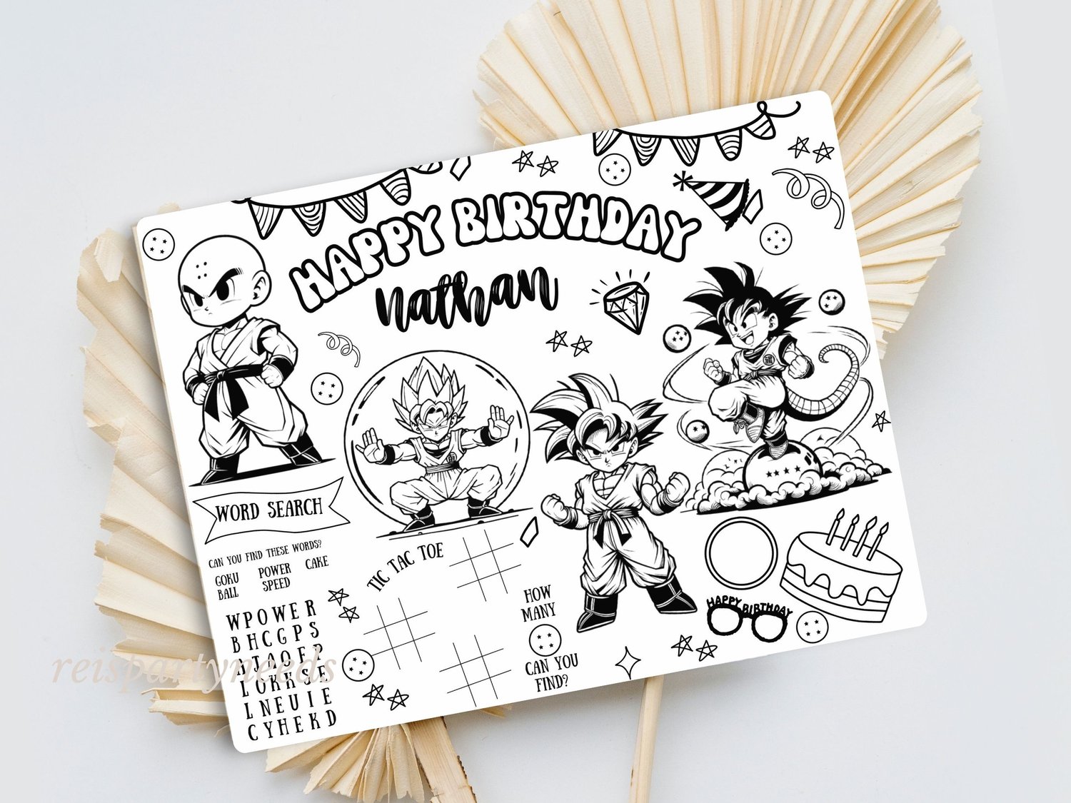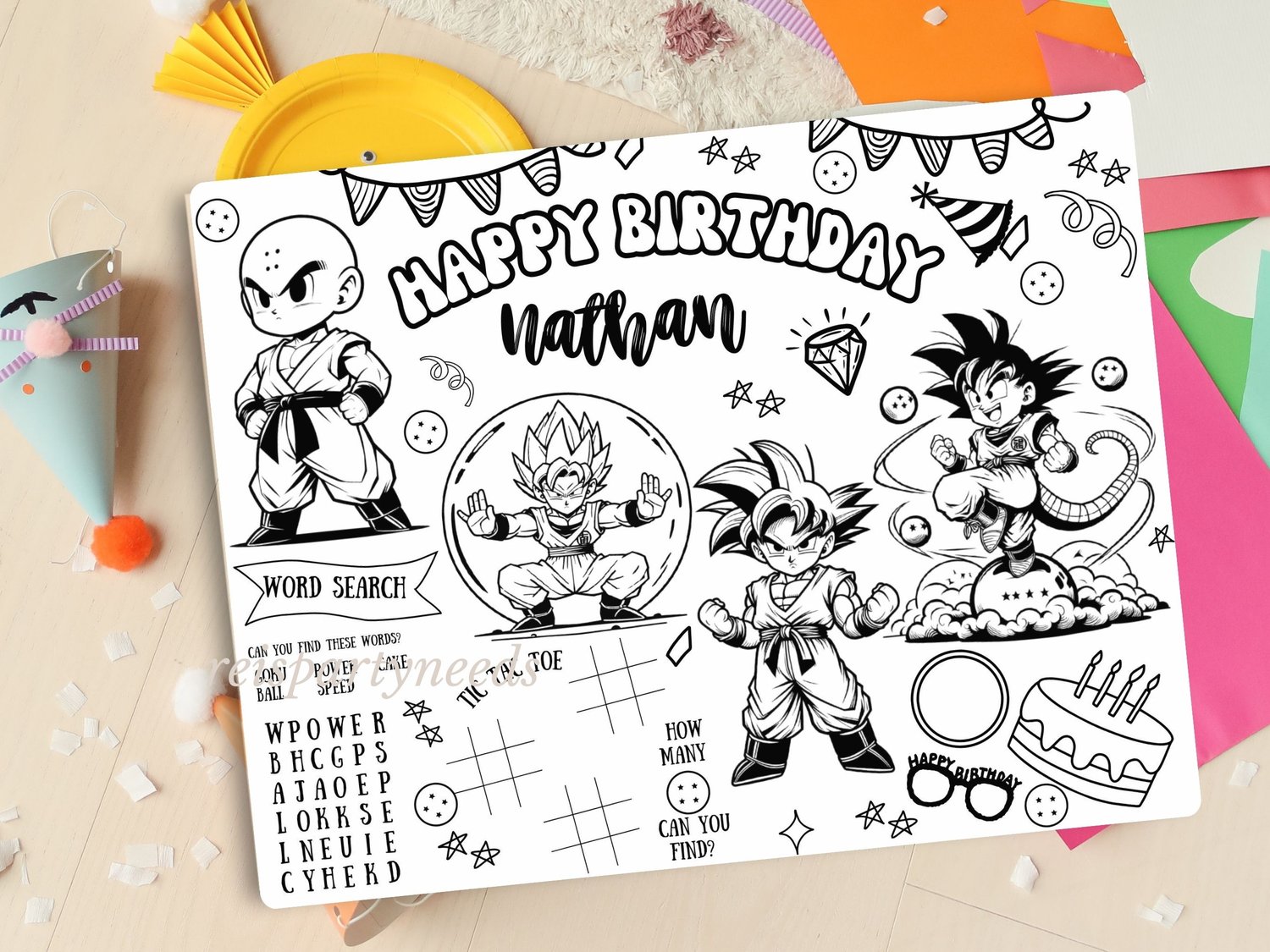 Dragon Ball Z Editable Coloring Placemat Coloring Page for Kids Birthday Party Goku Coloring Placemat, Dragon Balls Birthday Coloring Page