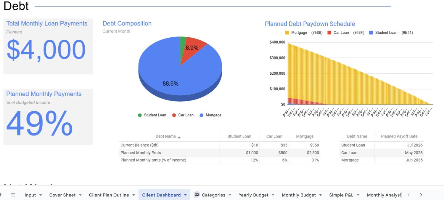 You won't just leave with a plan. You'll own a simple, automated financial system that shows you exactly where you stand, & gives you flexibility where you want it, with control where you need it. One that works quietly in the background so you spend minutes per week reviewing progress, instead of wasting hours managing a budget.