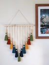 Tailoring your macrame wall hanging to your preferences is my pleasure! Reach out to discuss custom variations. Choose from an array of colored ropes, painted dowels, or opt for a natural or painted stick/branch in lieu of the dowel.