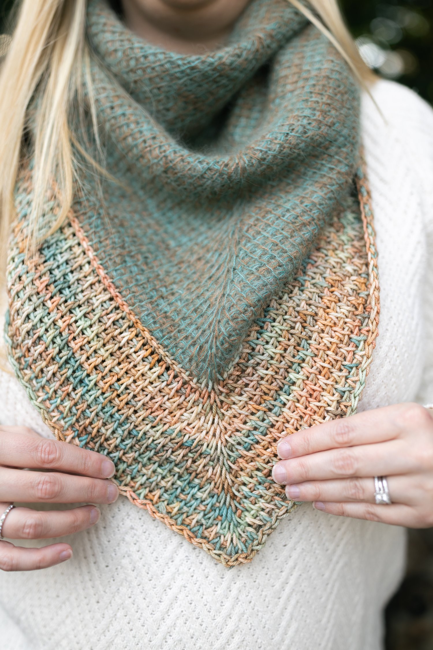 This shawl is just one piece of the VL Tunisian crochet collection which includes a scarf, hat, and ear warmer as well. Check out the entire collection here.