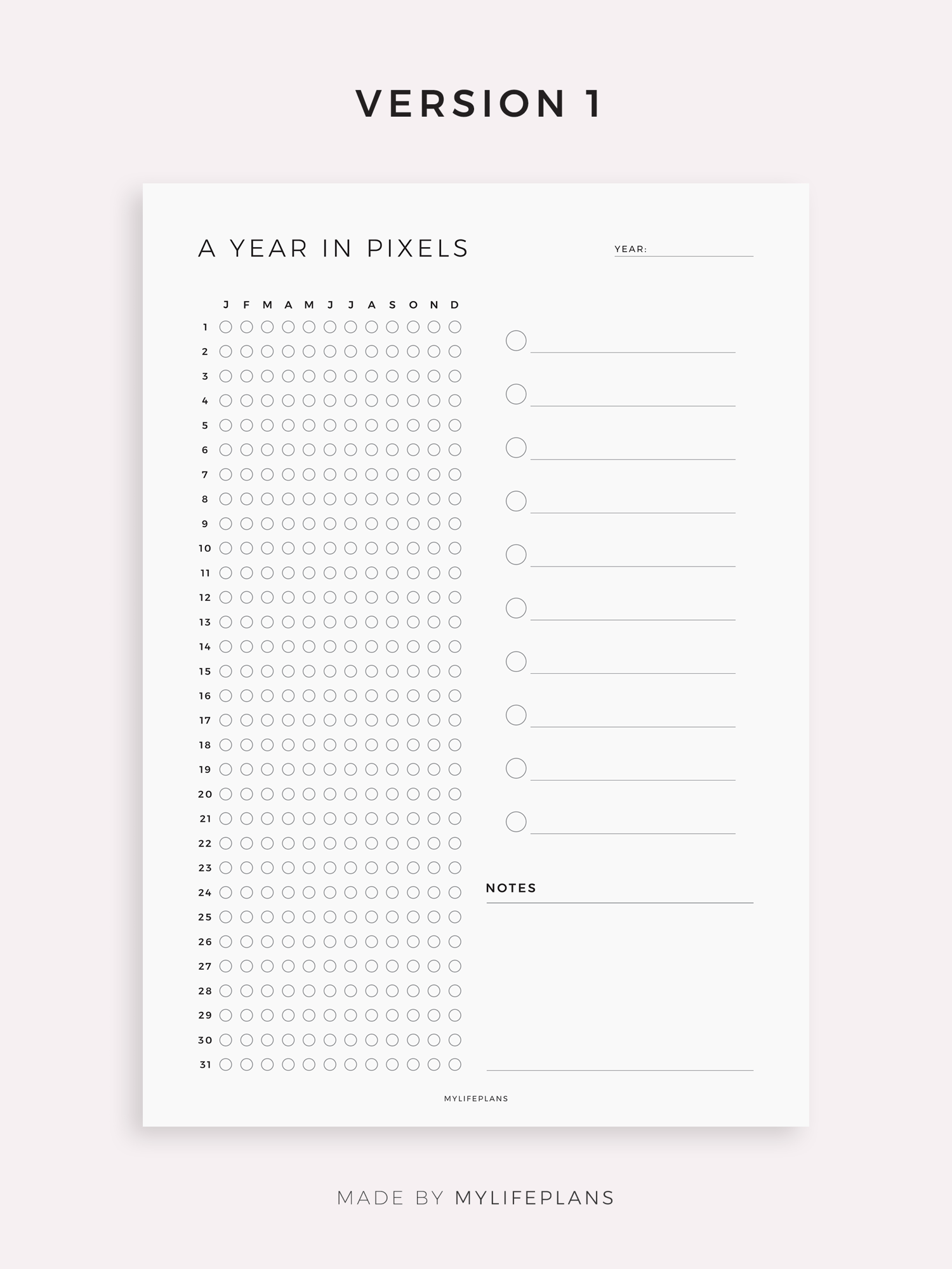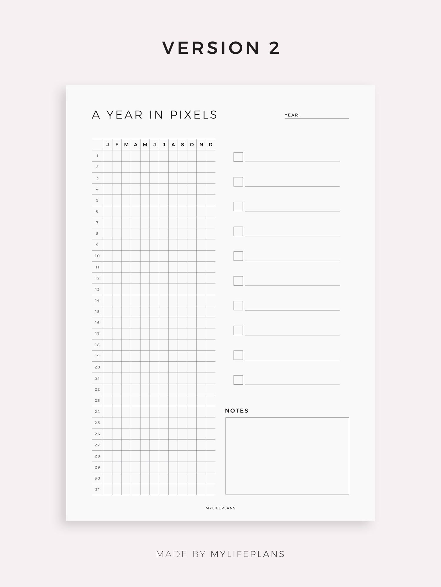 A Year In Pixels Template for Remarkable, Supernote, Kindle Scribe, Boox, Kobo