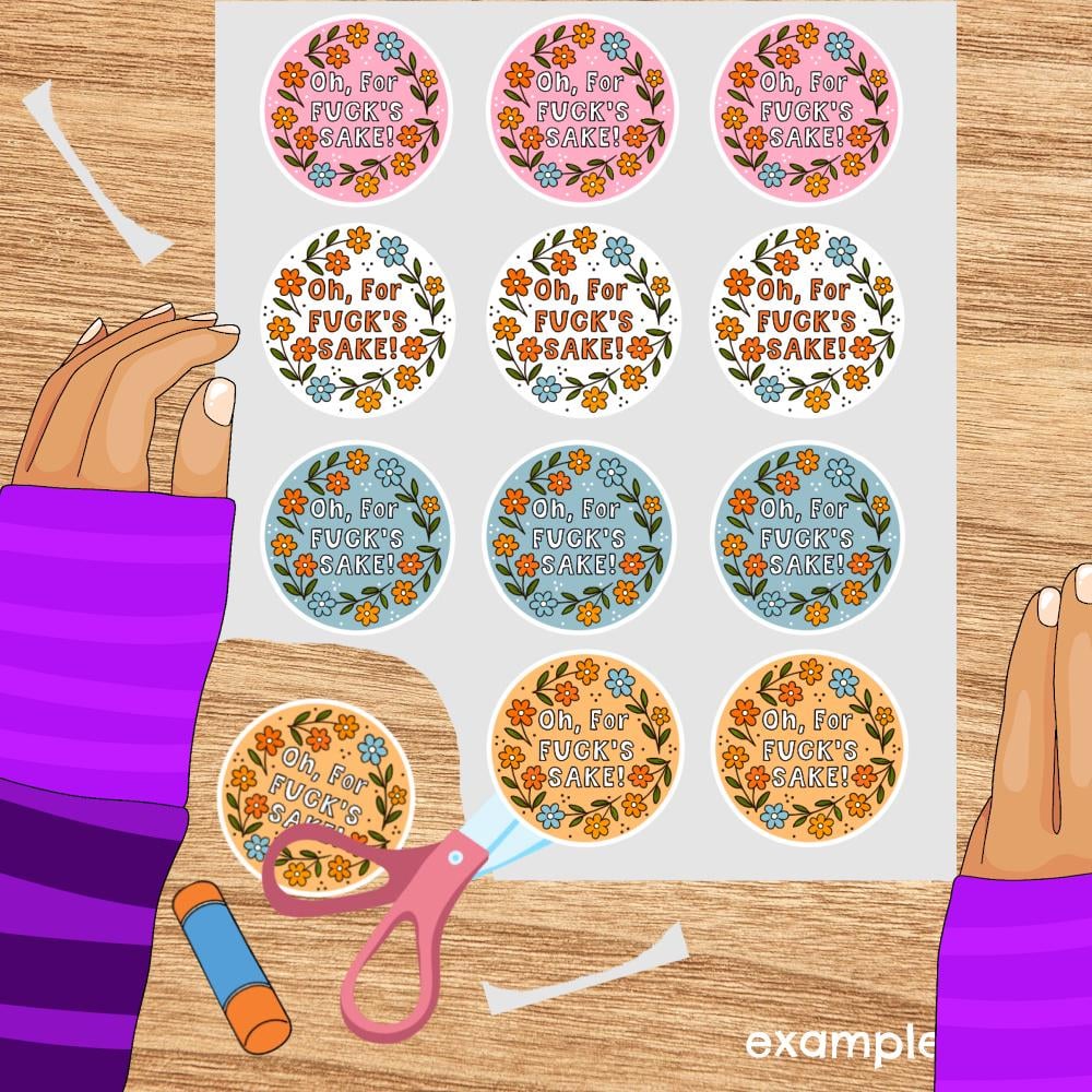 Oh For Fuck's Sake sweary graphics for stickers, badge reels, jar and candle labels, uv dtf transfers, shirts, digital journals and so much more!