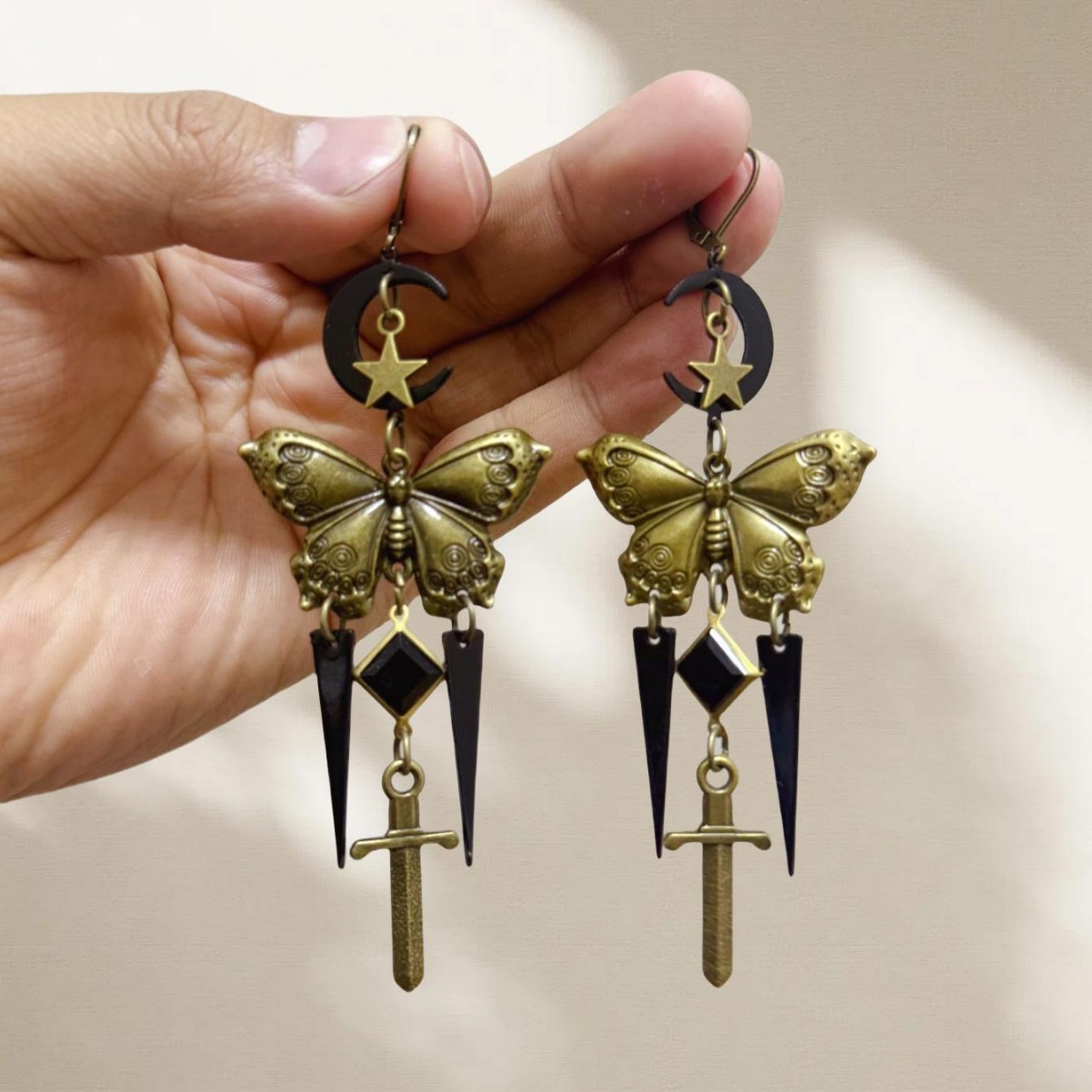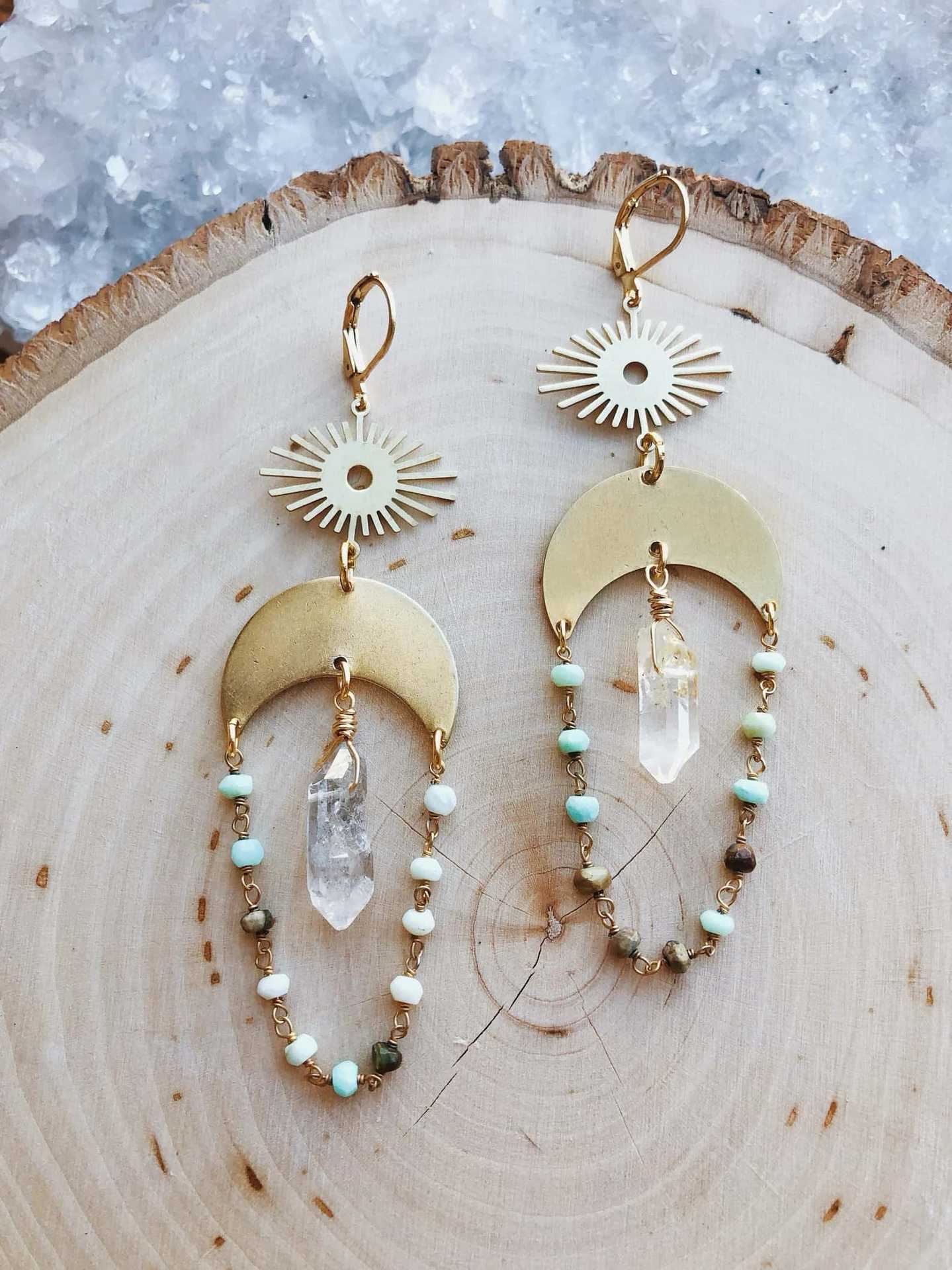 Whimsigoth witch magic sun raw quartz crystal drop earrings
