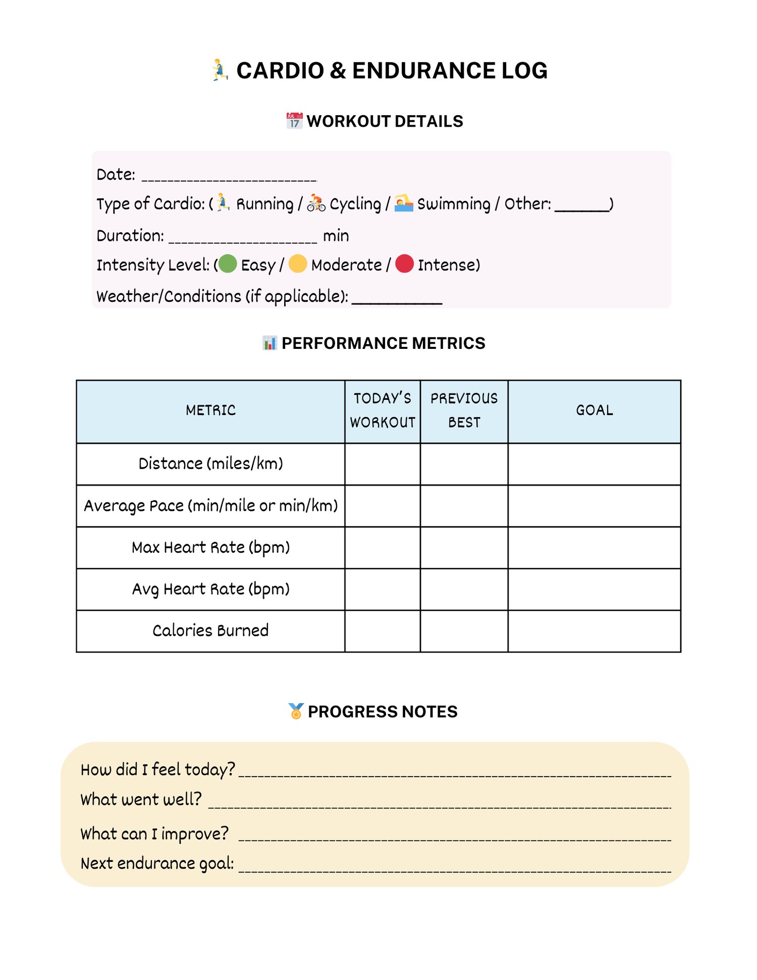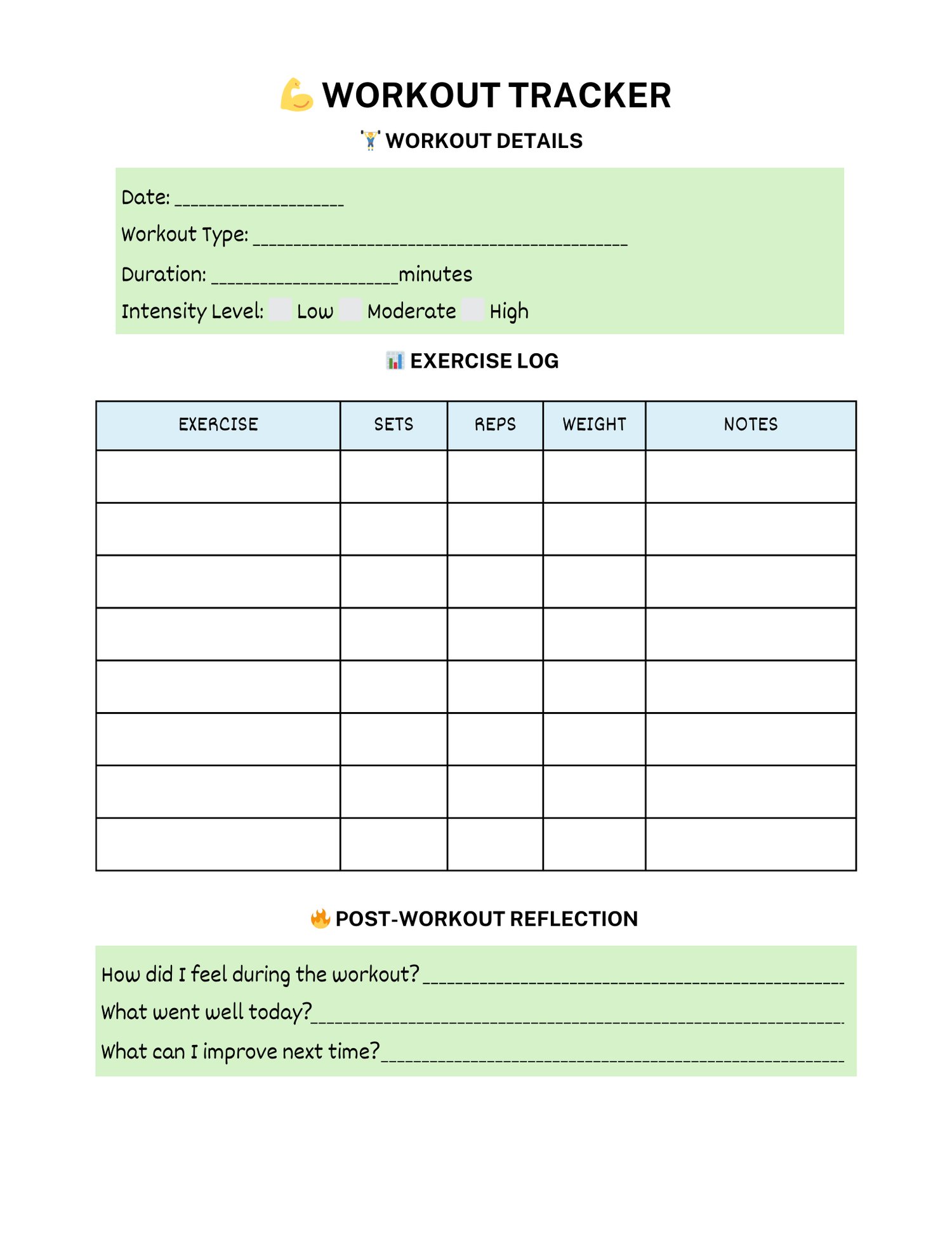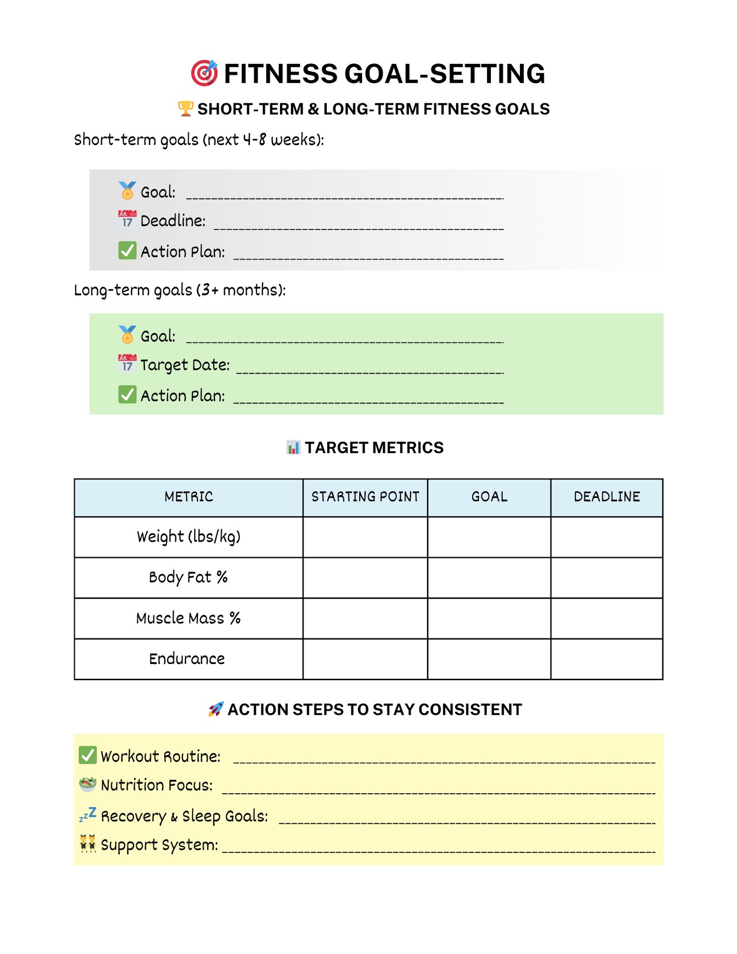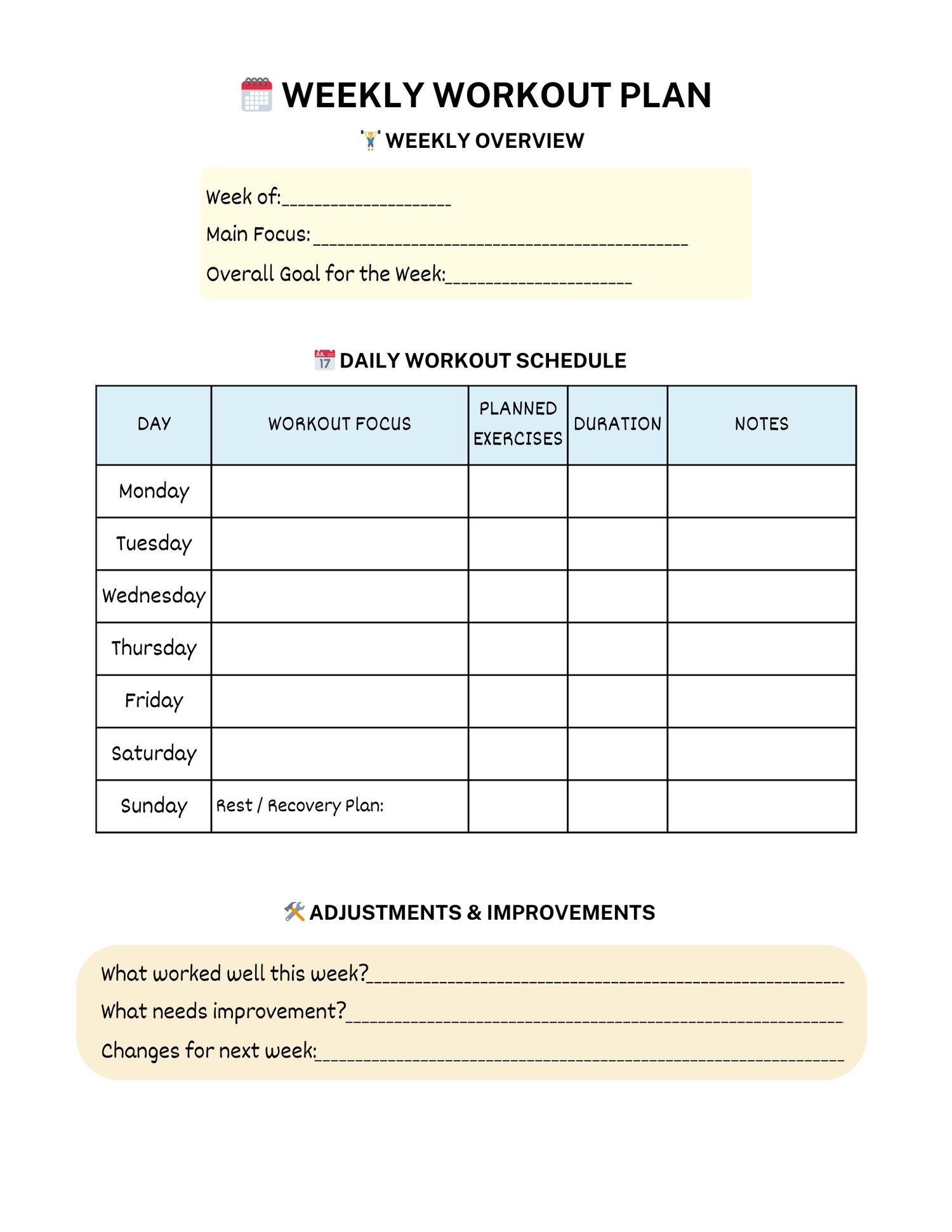 ✅ Weekly Workout Plan – Map out each week’s sessions for maximum efficiency.