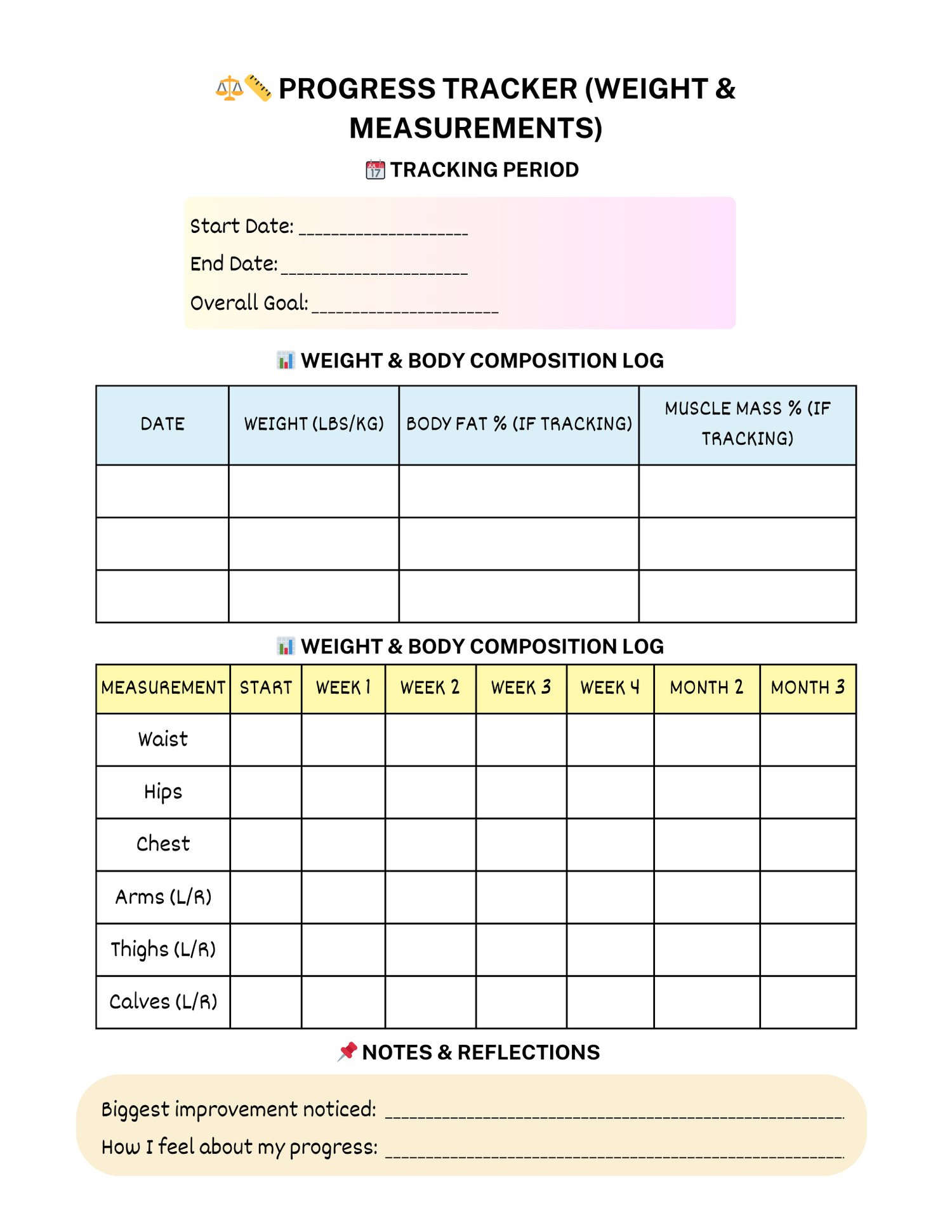 ✅ Progress Tracker (Weight & Measurements) – Monitor your physical transformation with monthly check-ins.