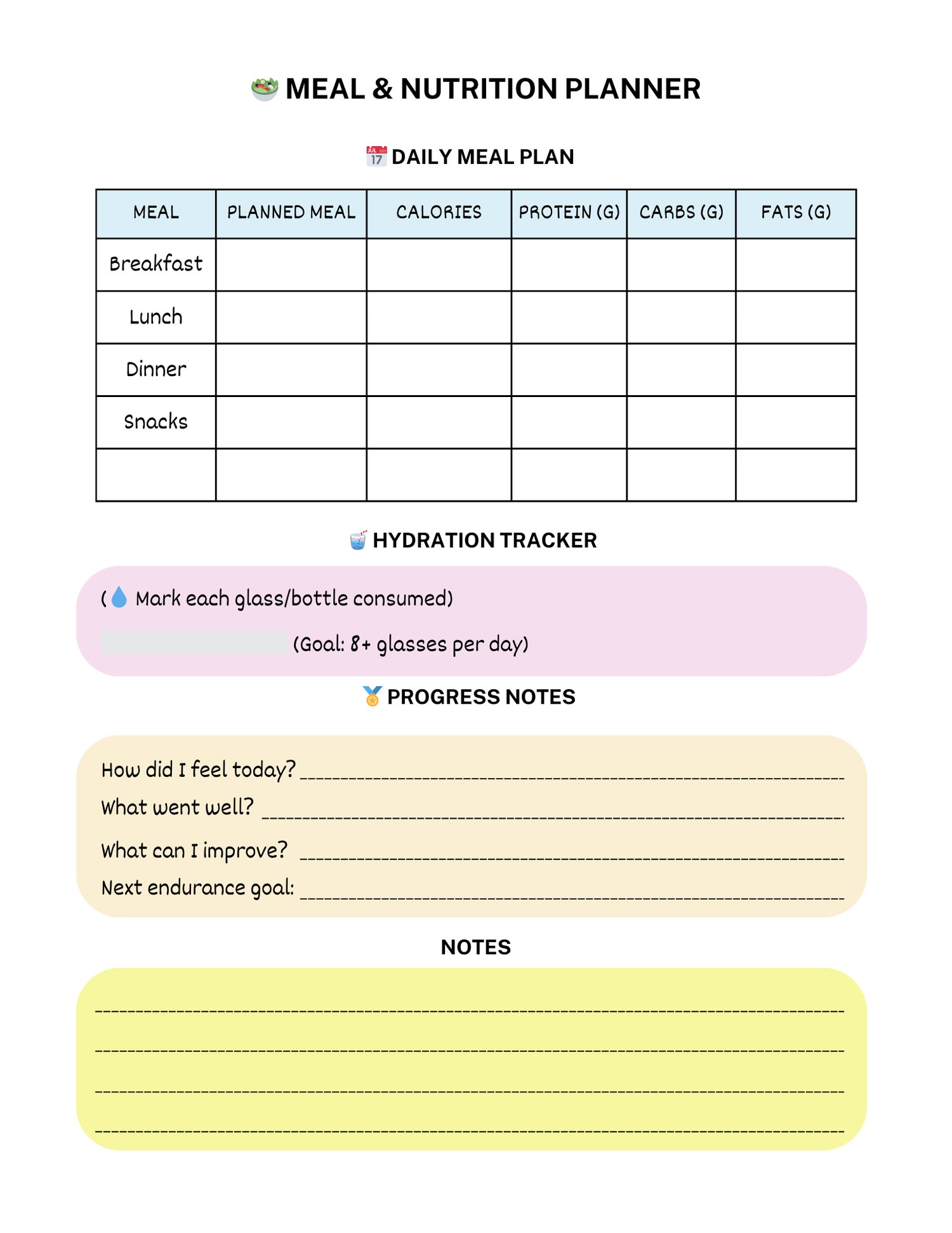 ✅ Meal & Nutrition Planner – Plan balanced meals, track macros, and stay fueled for success.