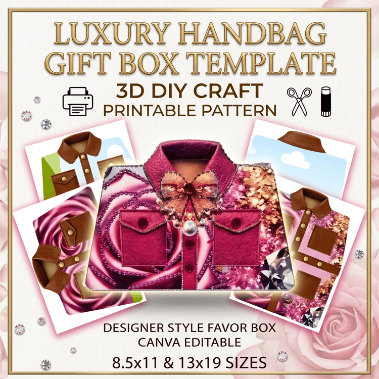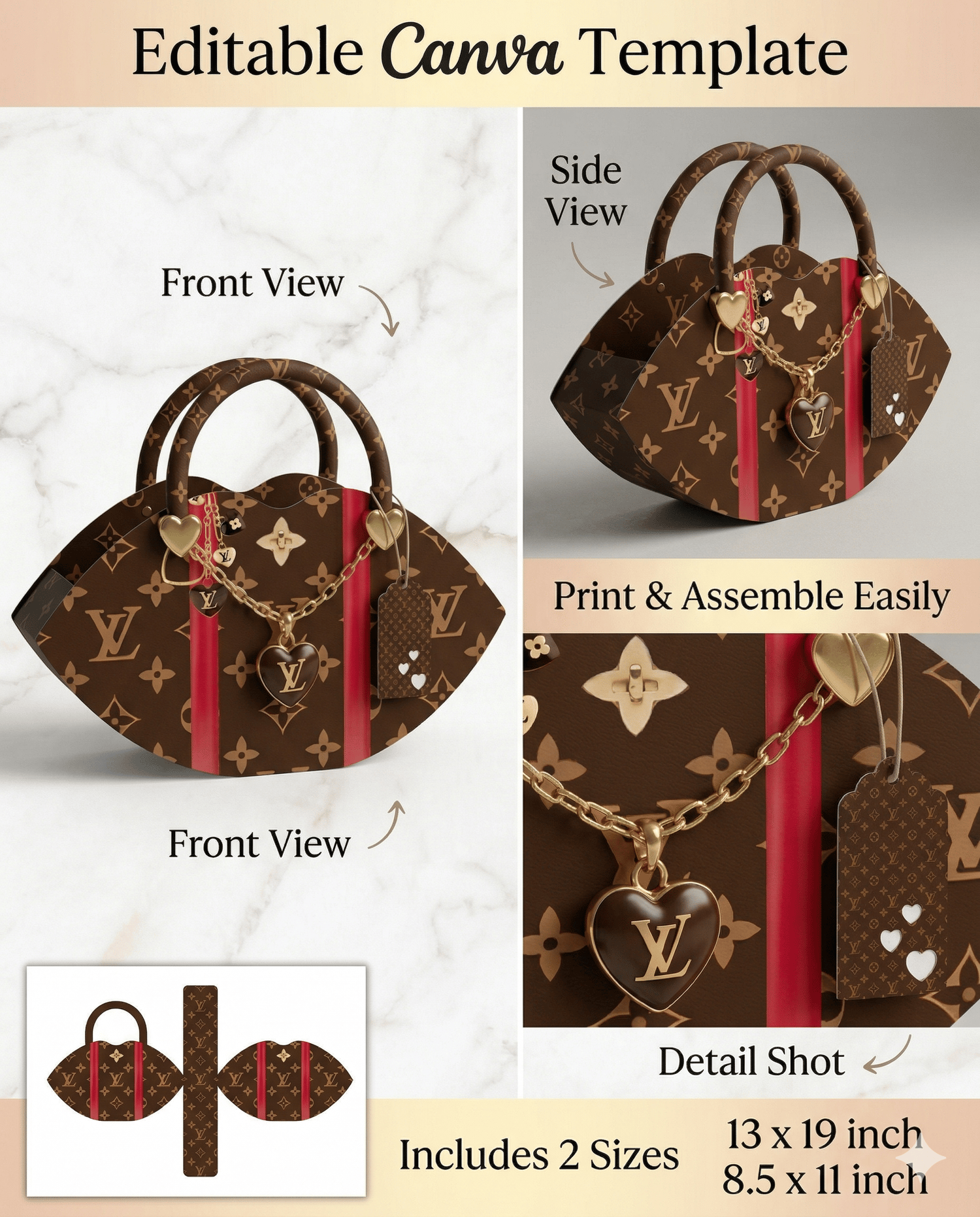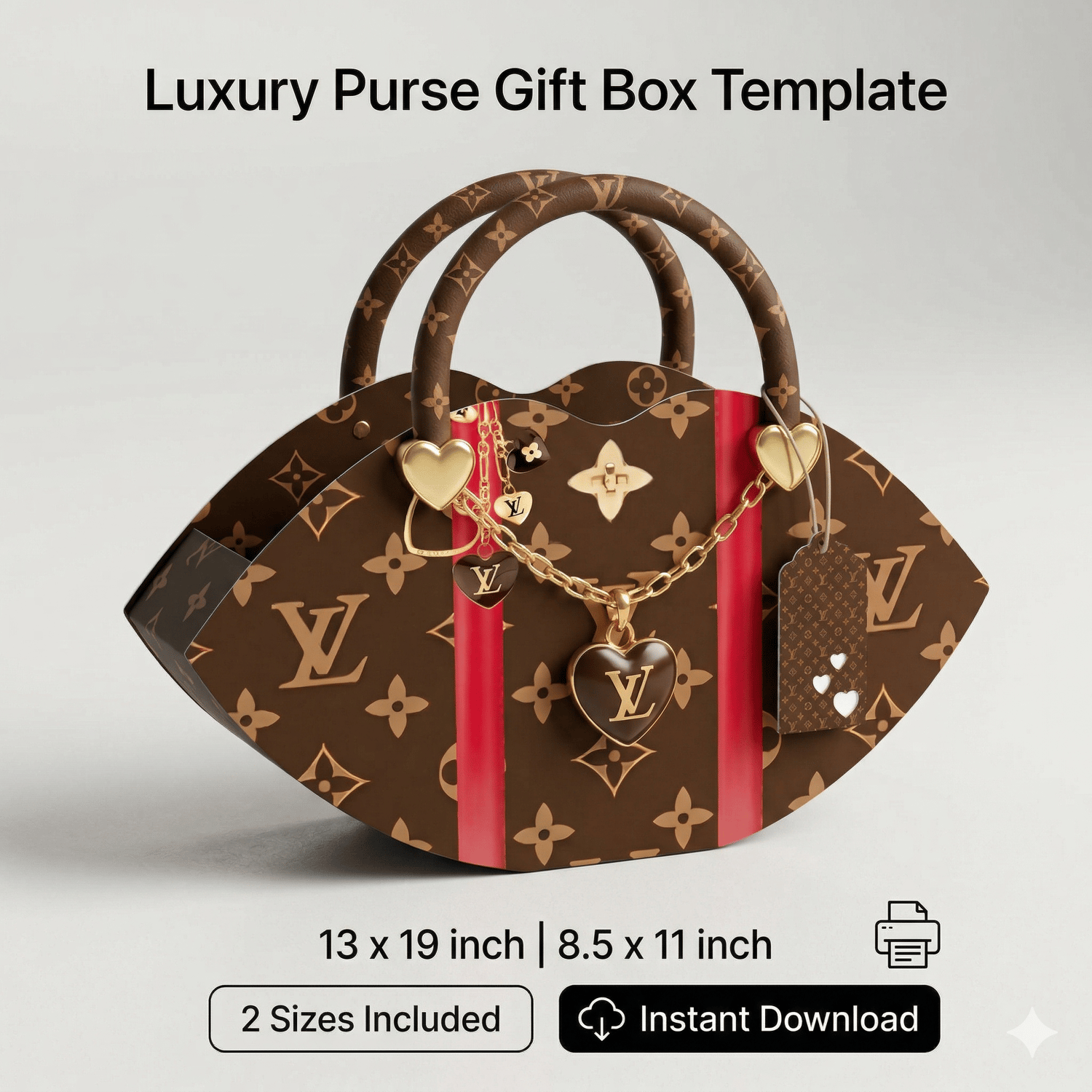 Luxury Purse Gift Box Template, Printable Handbag Box, Canva Editable, 13x19 & 8.5x11, DIY Favor Box, Party Gift Packaging, Instant Download