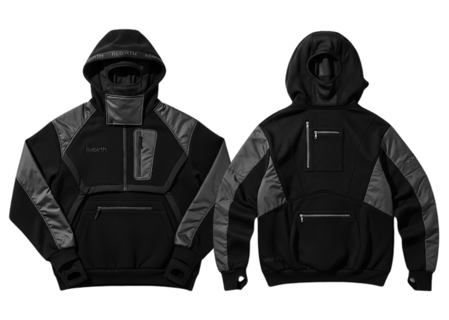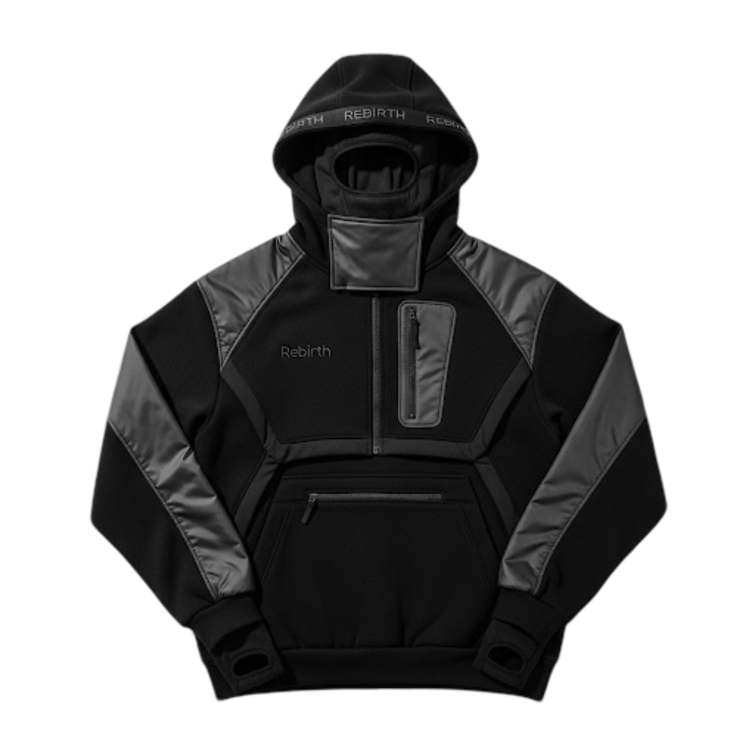 Built from premium 400–500 GSM cotton fleece, the REBIRTH Tactical Hoodie delivers bold structure, warmth, and style. Featuring a built-in balaclava, zippered utility pockets, and ribbed thumbhole cuffs, it’s made for movement and presence. Finished with REBIRTH embroidery on the chest and hood — this piece is your next statement essential.