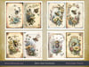 Antique style honey bees and bumble bees, slightly distressed shabby chic torn papers with pink, yellow, white and blue flowers. Printable wild and fantastical botanical pages perfect for scrapbooking, art journals and craft projects. Includes A4 sheets with 2 A5 size pages per sheet.