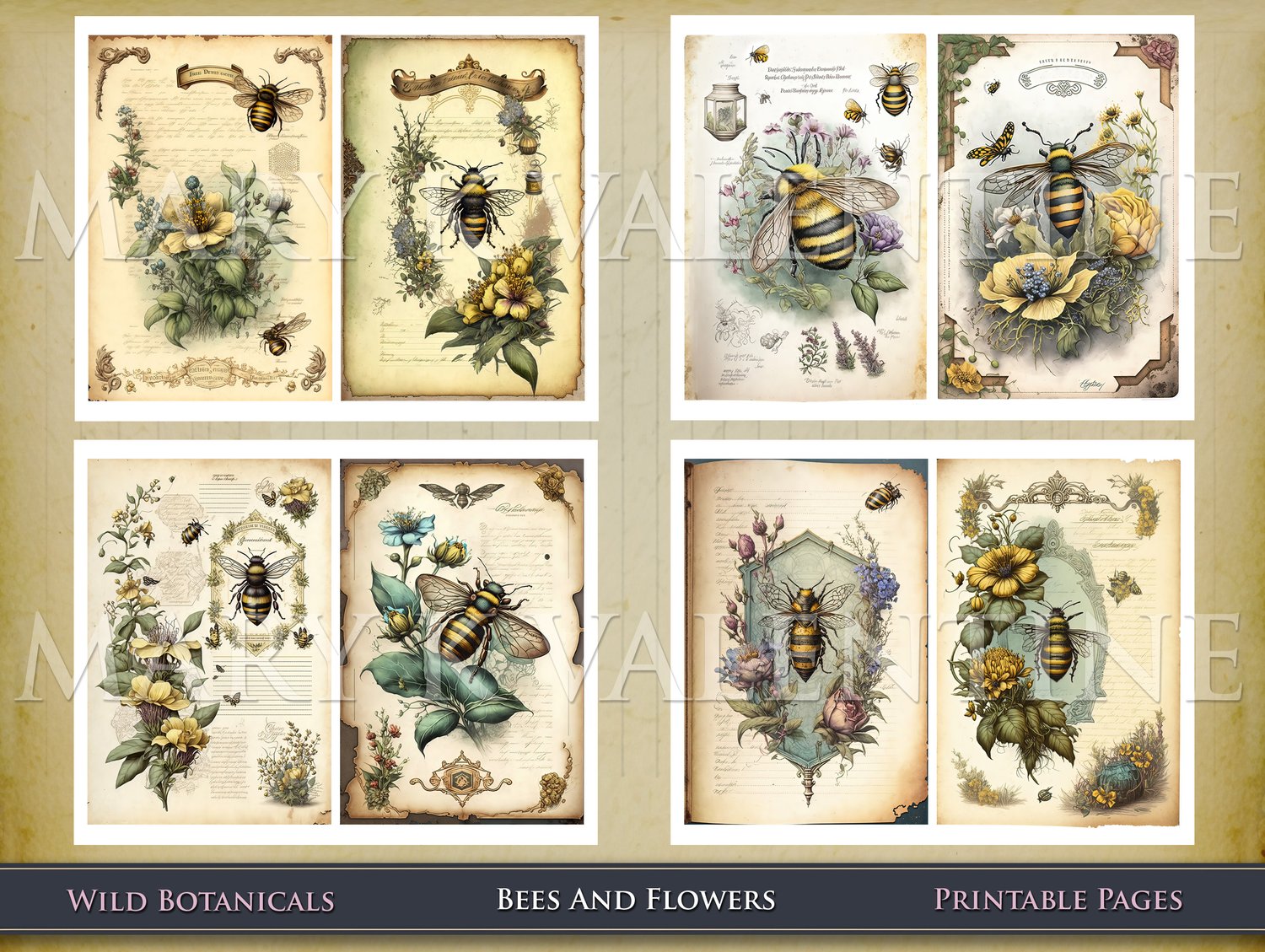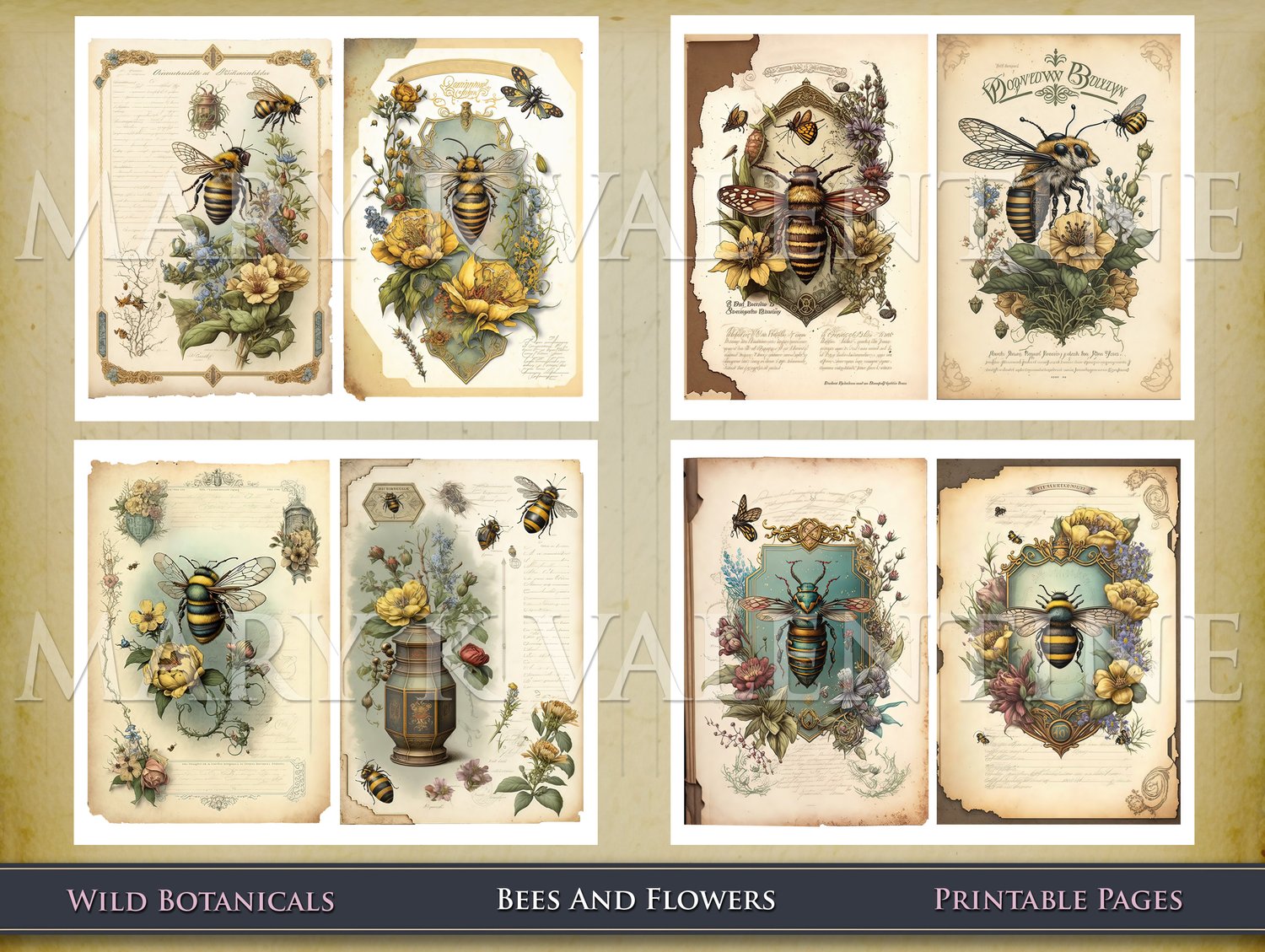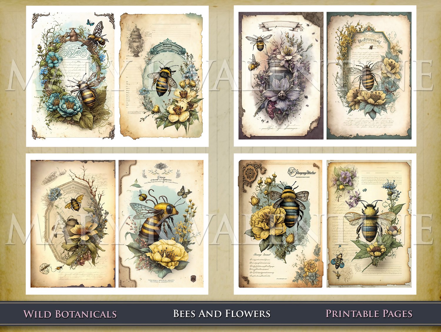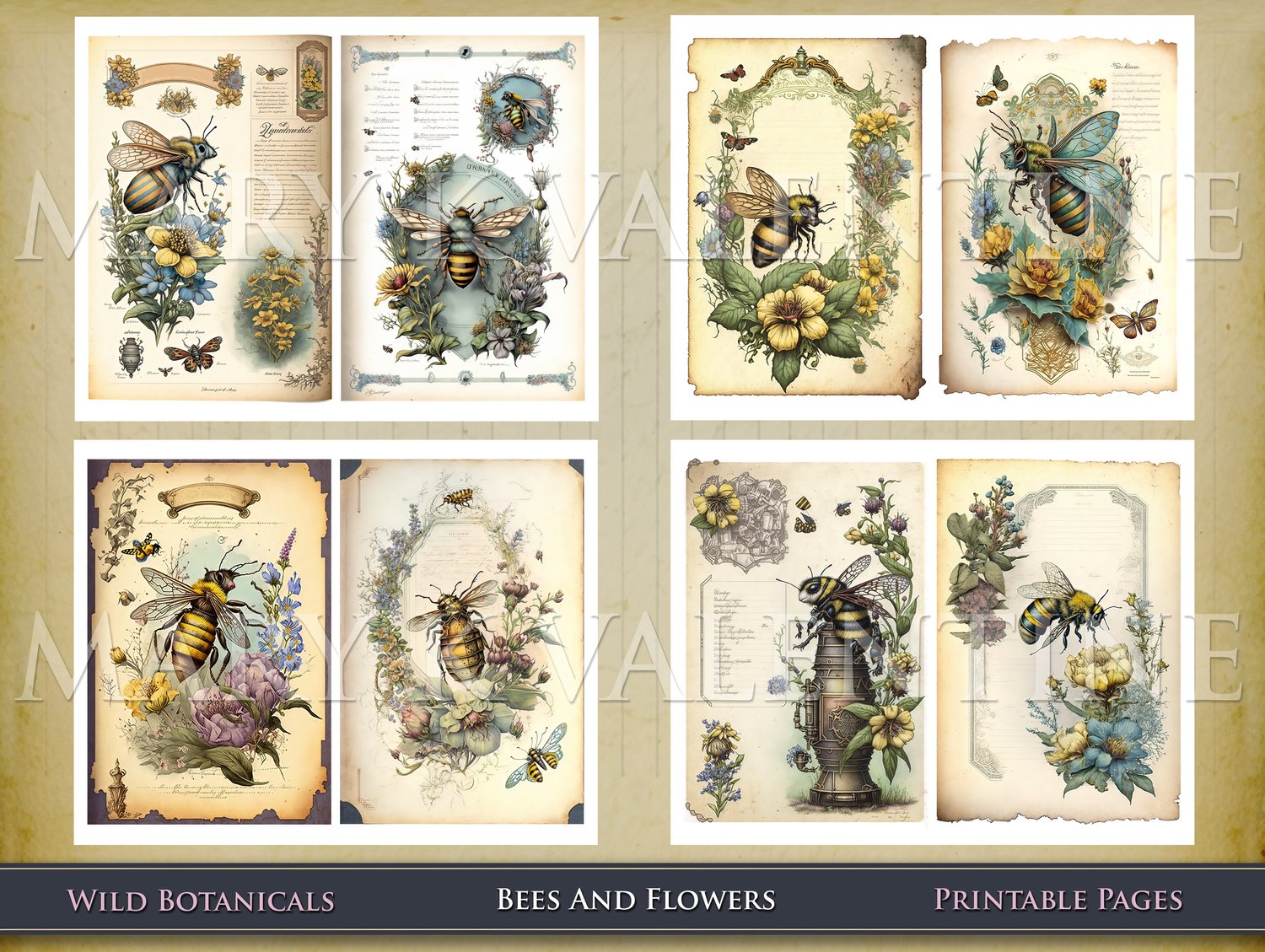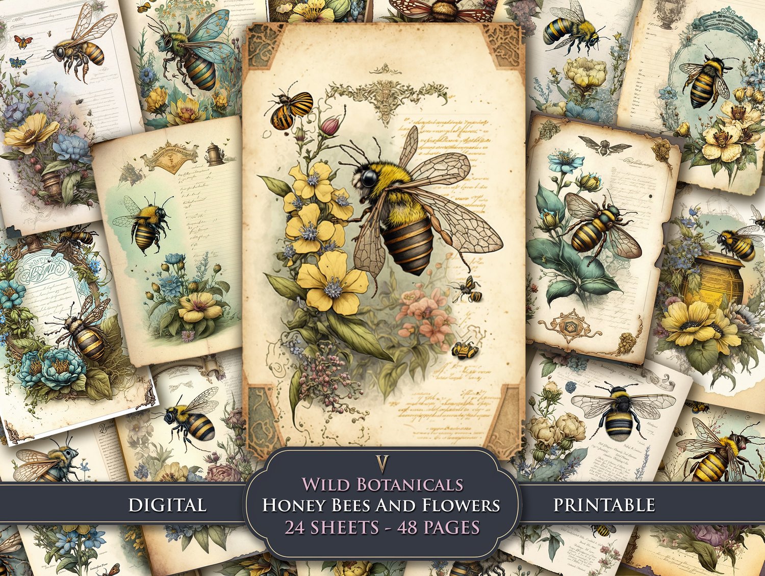 Wild Botanicals Honey Bees and Flowers Junk Journal Printable Pages