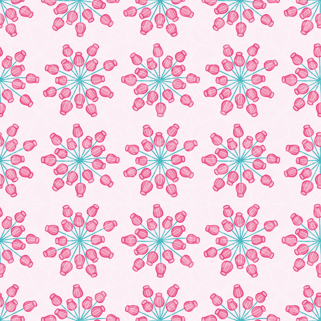 Pink flower buds vector repeat pattern. Cute wild floral illustration background.