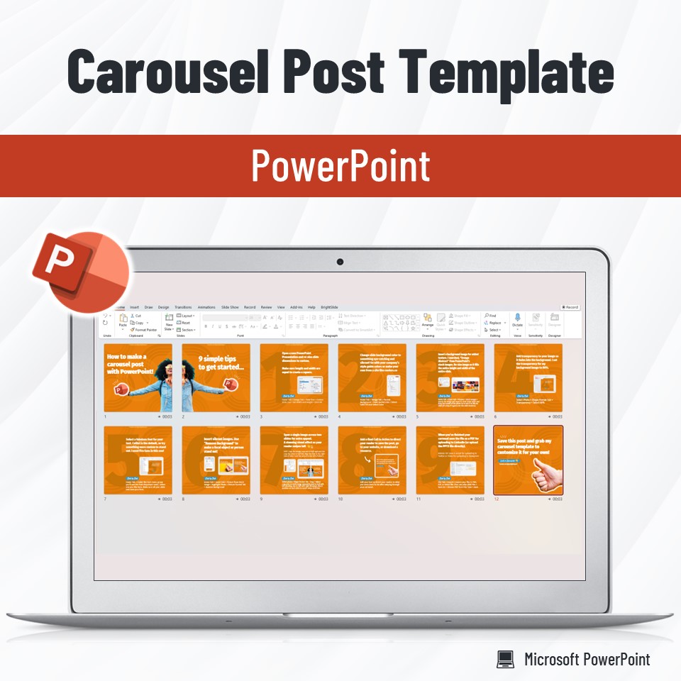 Carousel posts are great ways to share a list of tips, tricks, and knowledge with your audience on social media. You can make them right in PowerPoint with a few simple steps. Download my carousel examplar as a template you can use and update for your own content. Once you've finished updating your content save the file as a PDF or export it as a GIF or Video ready for sharing with your audience! 👍 The file comes with all of the designed slides you see in my carousel which you can edit and customize to your content. It also comes with 8 basic slide template layouts in different colors: 1 White, 1 Black, 2 oranges, 2 greens, and 2 blues.