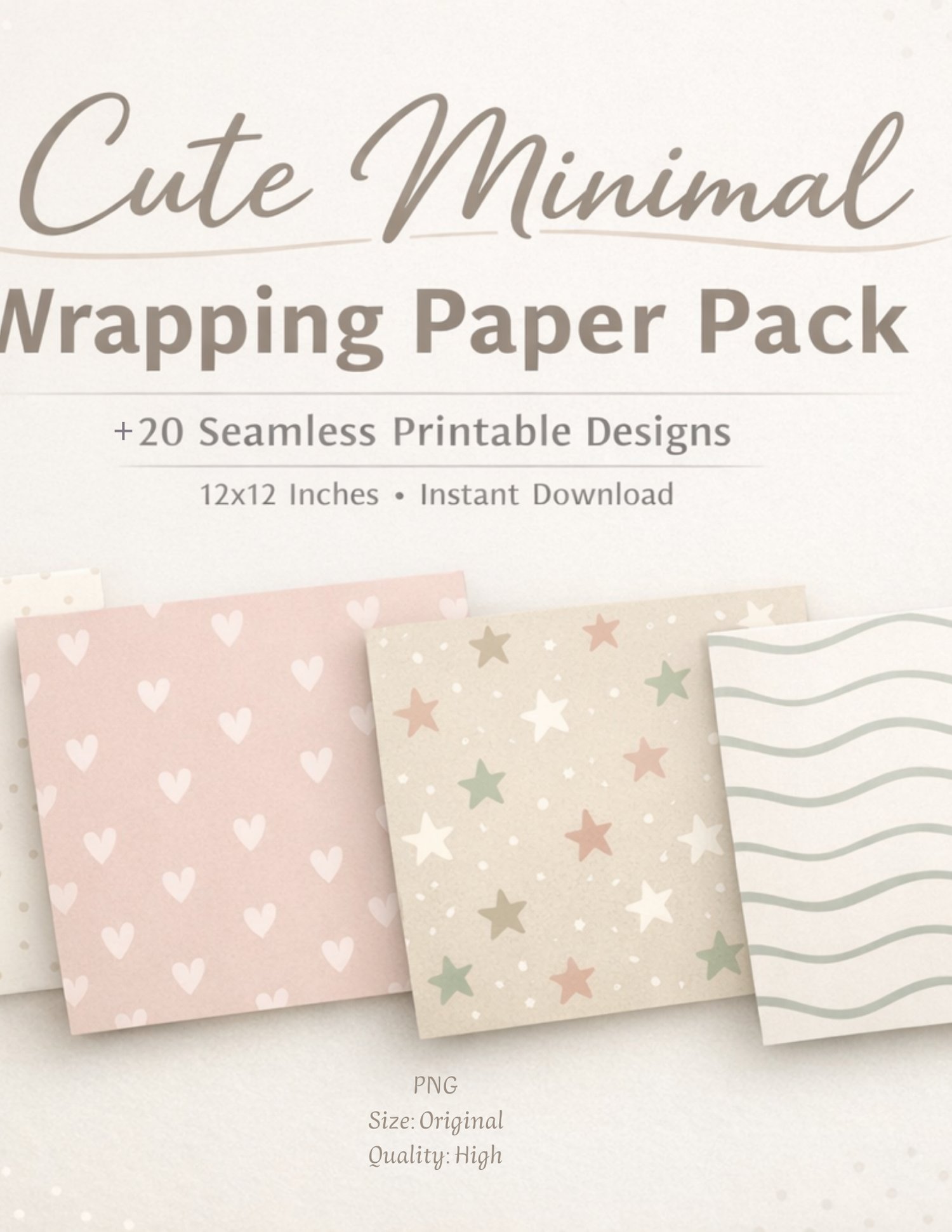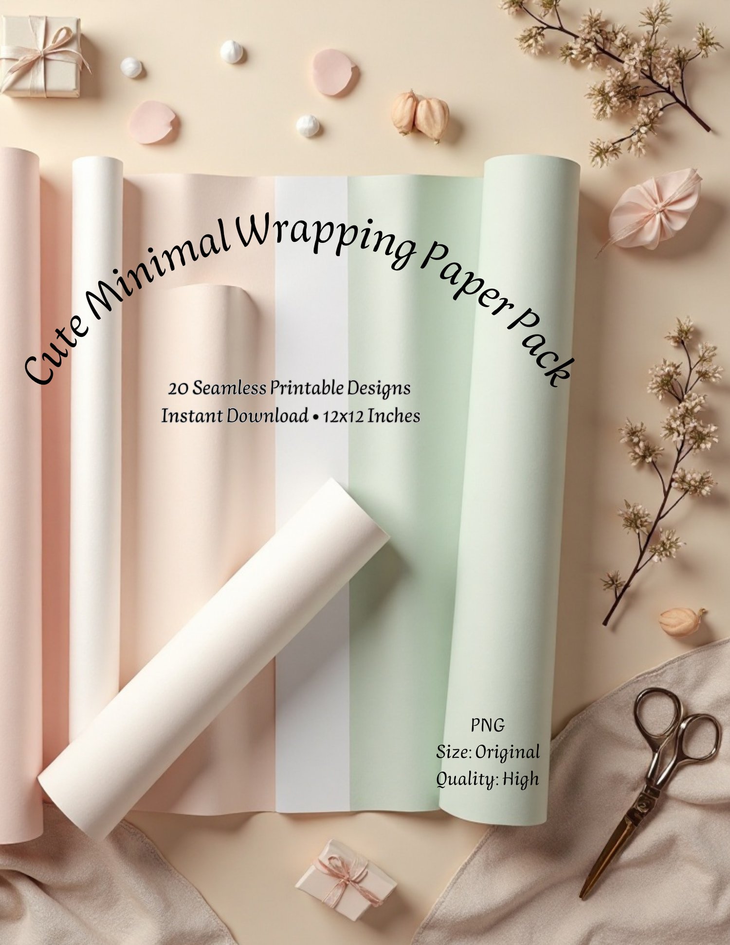 Cute Minimal Wrapping Paper Pack + 30 Seamless Printable Designs