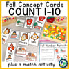 Fall Number Concept Cards Set 1-10 and Activity