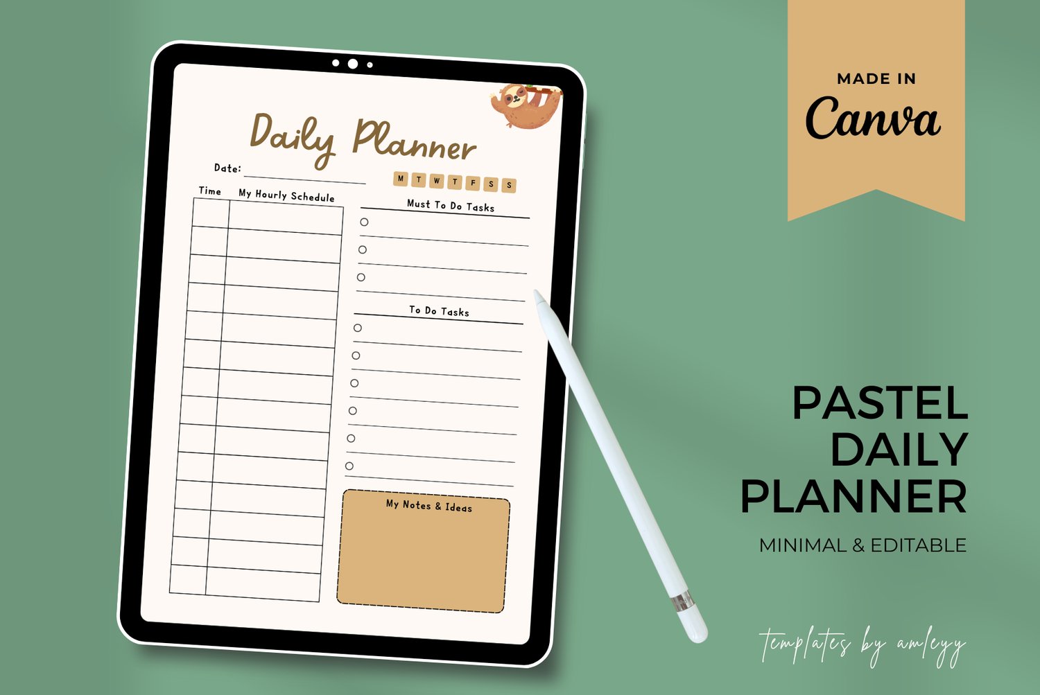 Pastel Daily Planner Template — Editable Canva Planner Page, Aesthetic Pastel Daily Schedule, Printable Productivity Planner
