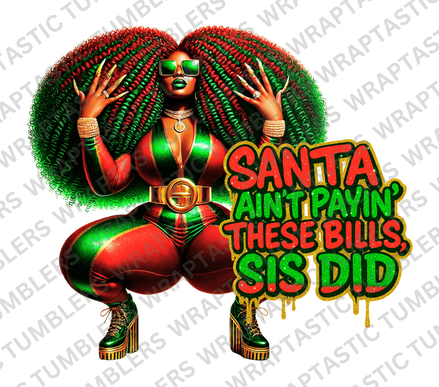 Santa Ain’t Payin These Bills Sis Did PNG Christmas Black Girl PNG Digital Download Clipart Sublimation Design for Shirts Tumblers Mugs