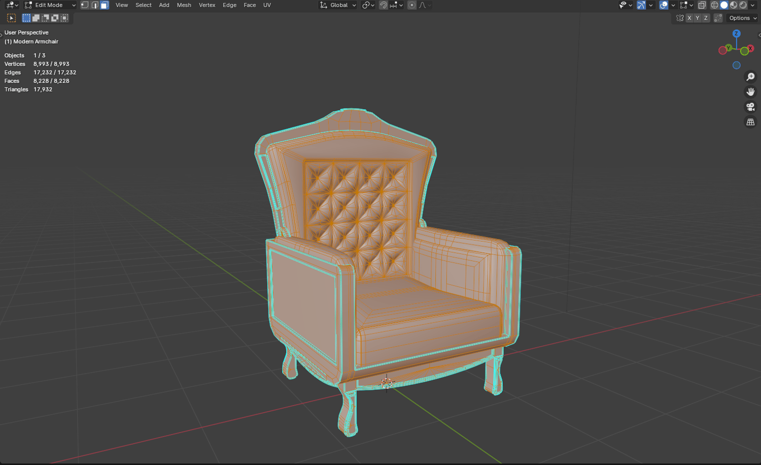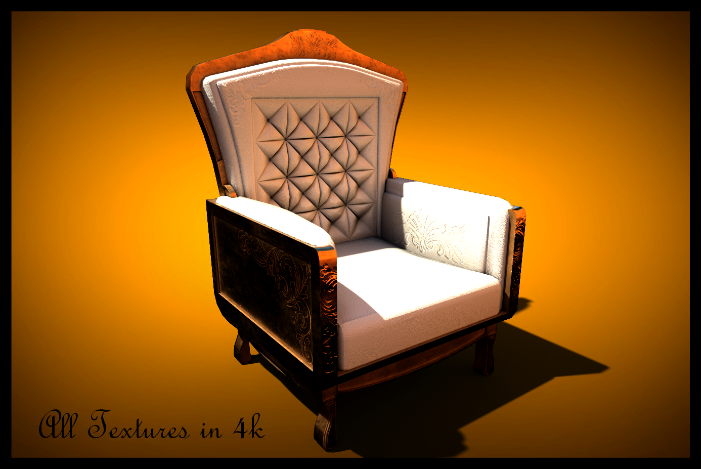 A 3D Modern Armchair, made in blender 3D, have Base Texture, Metal Map, Normal Map and Roughness.
