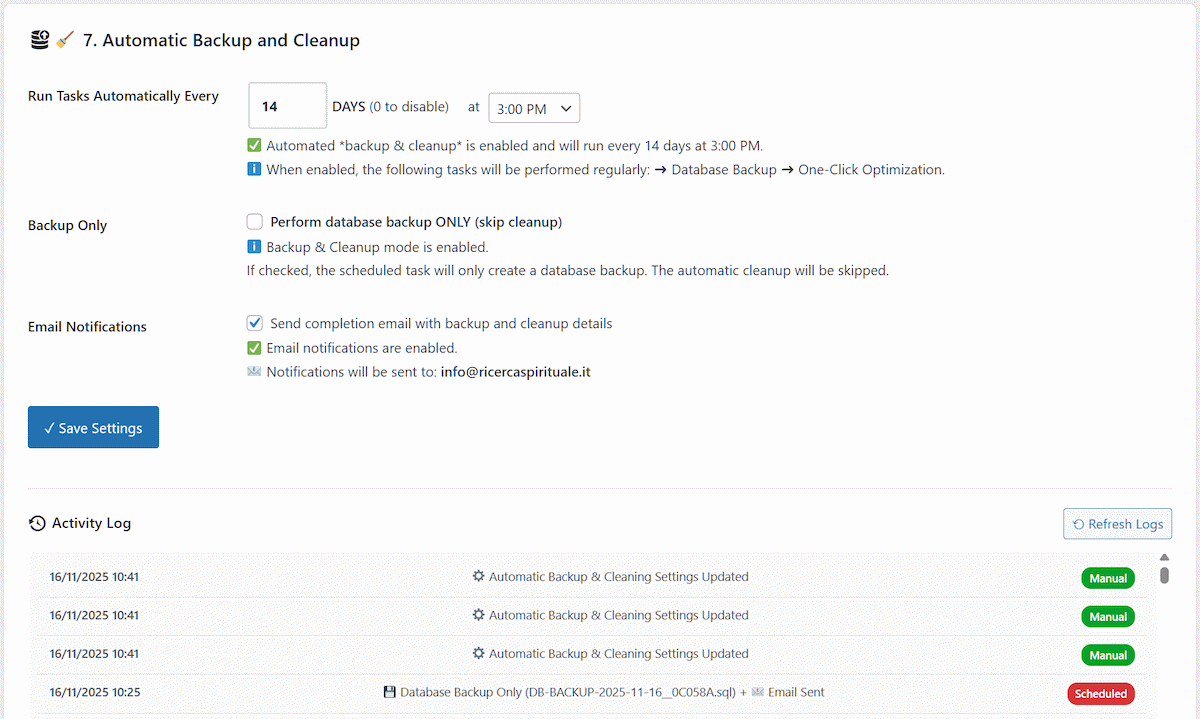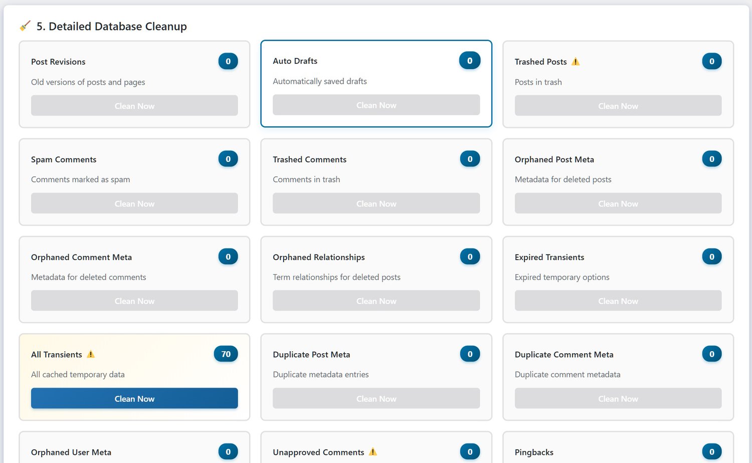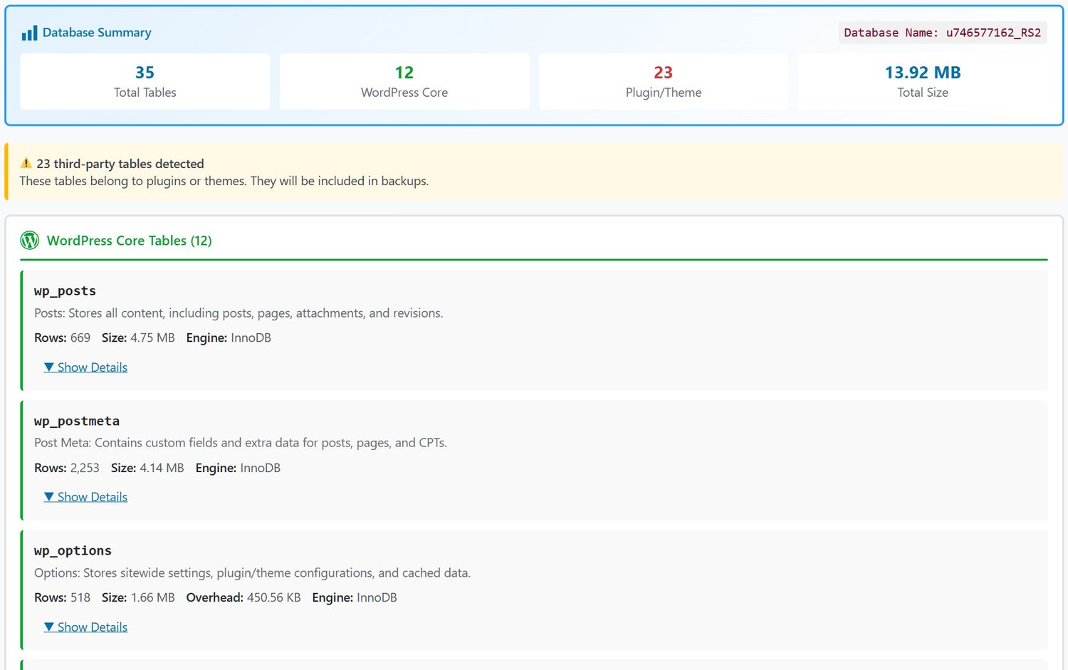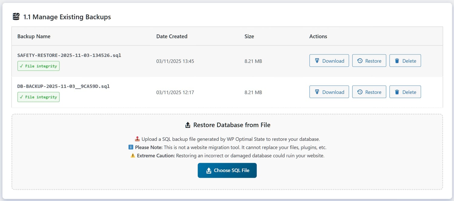 WP Optimal State provides an intuitive interface to safely identify, review, and remove this unnecessary data while optimizing your database tables for maximum efficiency. Key features include one-click optimization, detailed cleanup options, advanced table optimization and repair, an integrated database backup and restore manager with enhanced safety features, a database health score, database structure analysis, an automated cleaning scheduler with email notifications, and a performance features manager to enable or disable WordPress core functions.