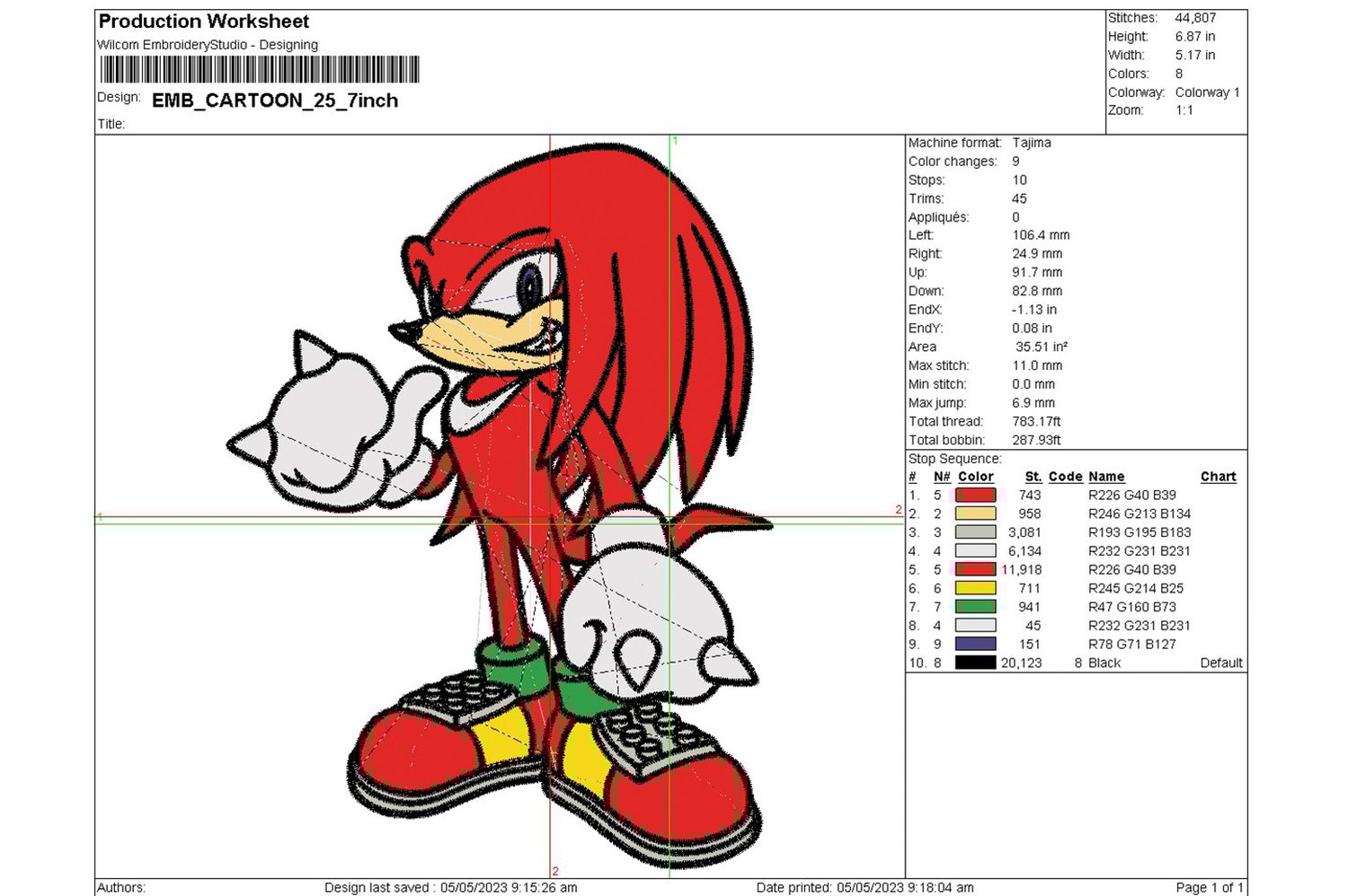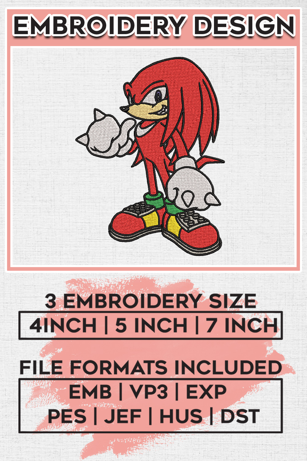 Knuckles Sonic Character Embroidery Designs, Sonic The Hedgedog Machine Embroidery Files, Cartoon Character embroidery designs, Digital Download