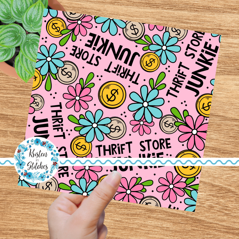 Thrift Store Junkie seamless pattern, Perfect for the person who loves thrift shopping, second hand treasure hunting, etc.