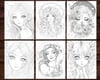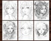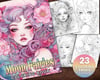 23 Moon Fairies Coloring Page, Adults + kids - Download - Grayscale Coloring Page - Gift, Printable PDF, fairies, goddess of the moon, sun