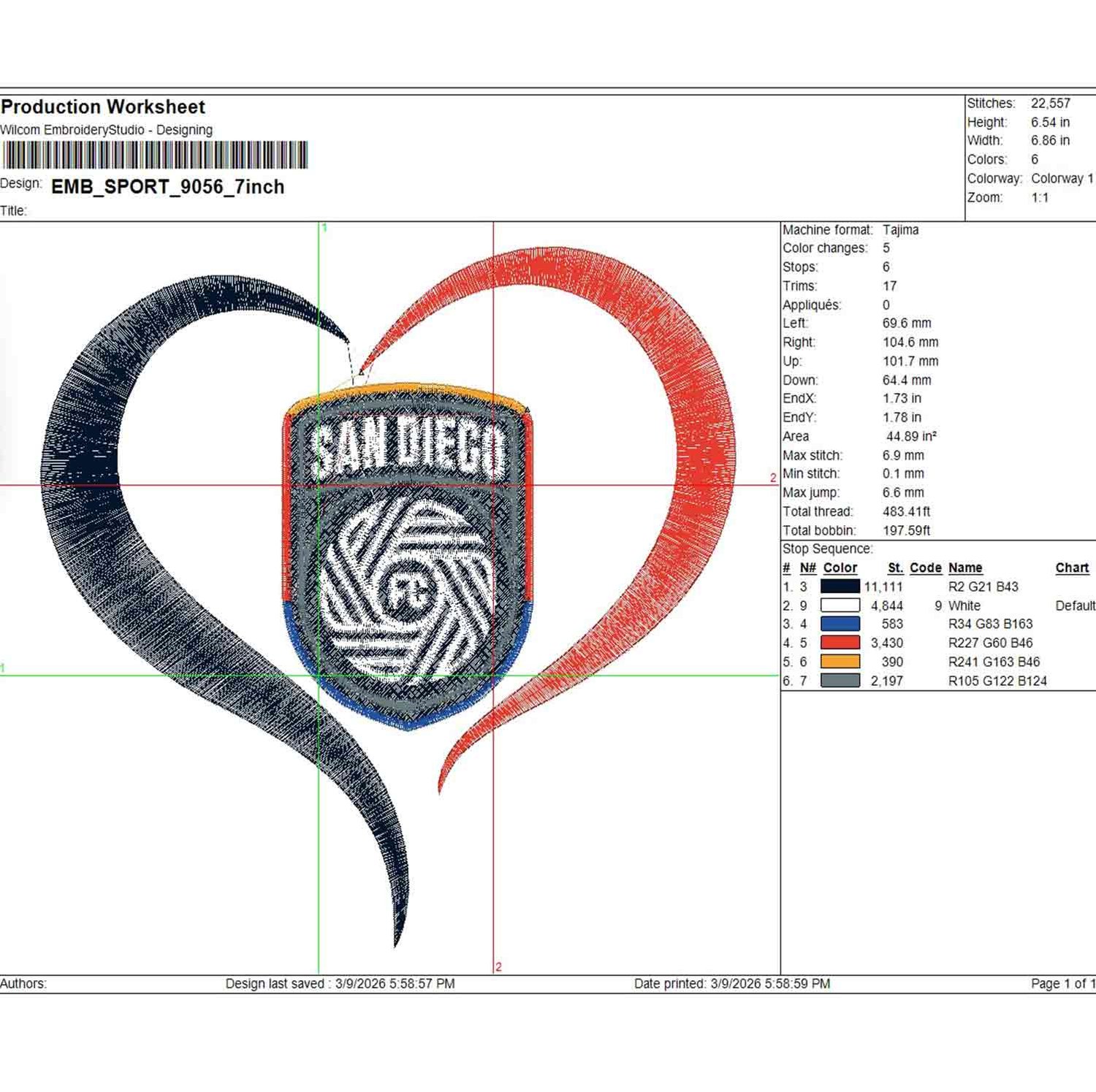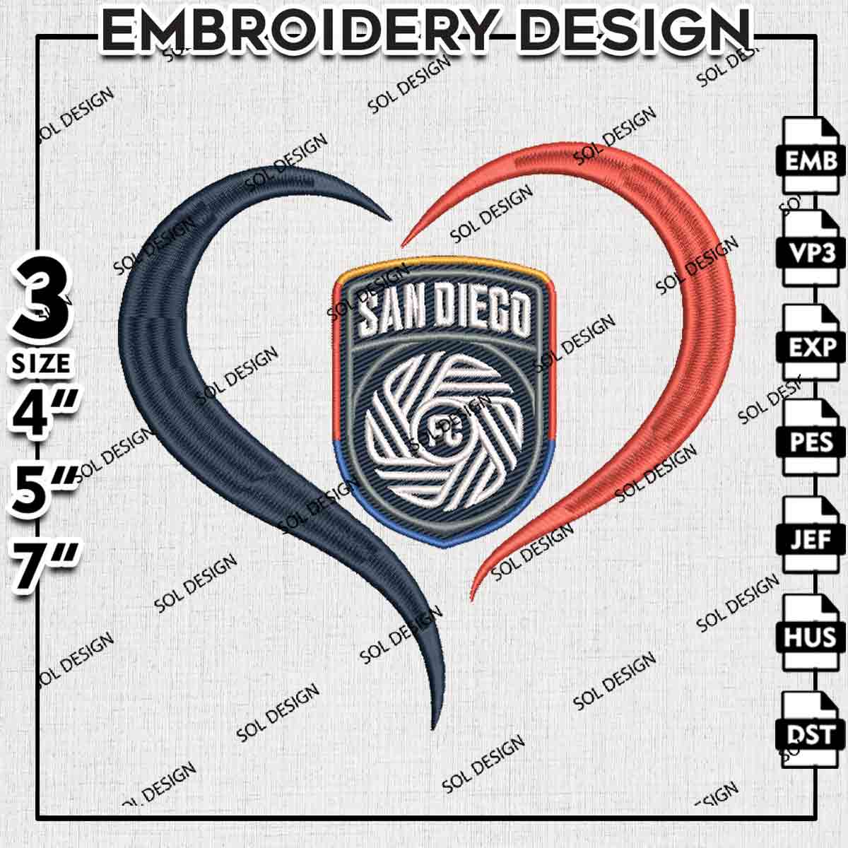 MLS San Diego FC Heart Logo Embroidery Designs, San Diego FC Embroidery Files, MLS San Diego FC Logo Embroidery, Major League Soccer Machine Embroidery Design, Digital Download