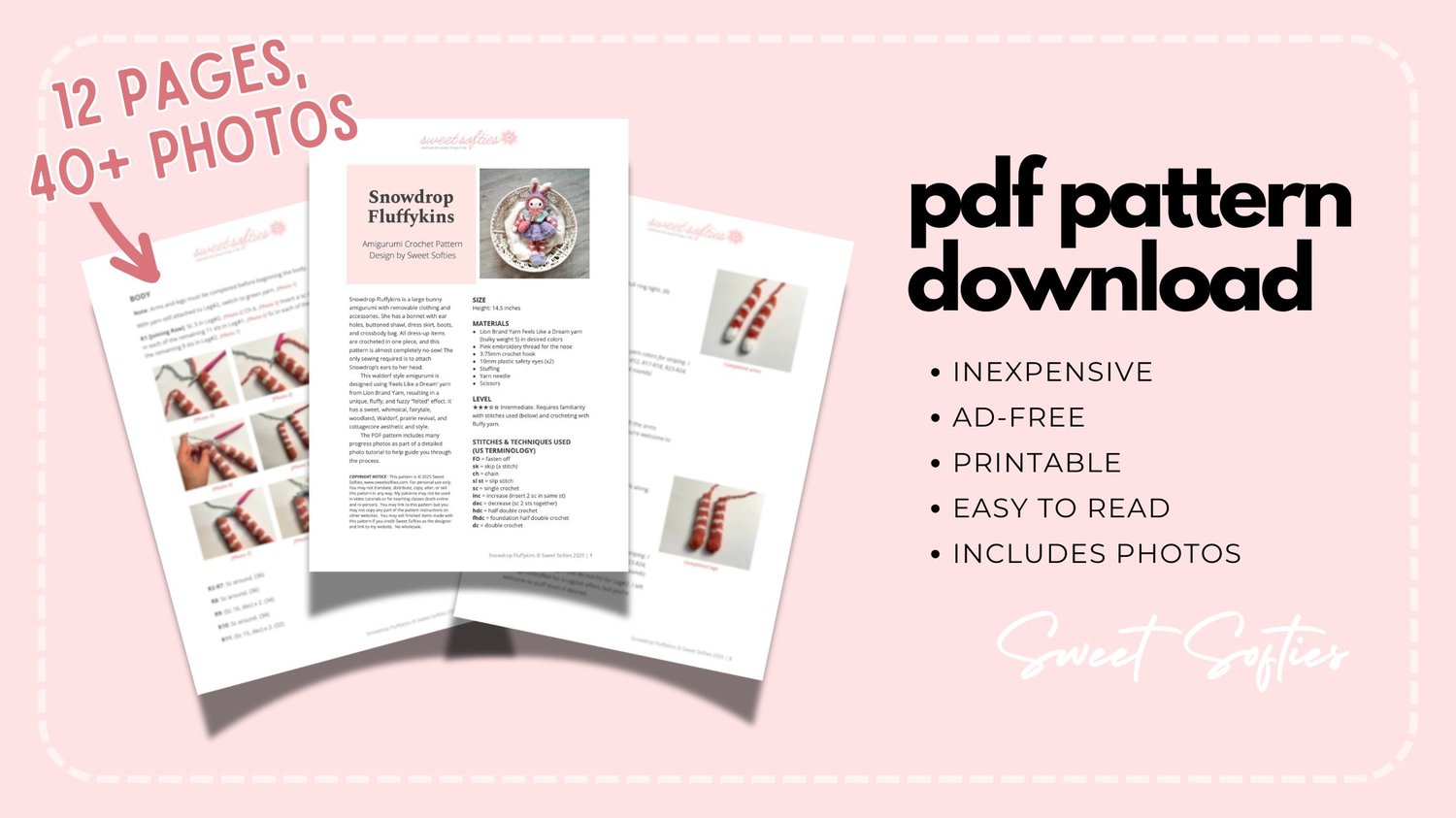 COPYRIGHT NOTICE · This pattern is © 2025 Sweet Softies, www.sweetsofties.com. For personal use only. You may not translate, distribute, copy, alter, or sell this pattern in any way. My patterns may not be used in video tutorials or for teaching classes (both online and in-person). You may link to this pattern but you may not copy any part of the pattern instructions on other websites. You may sell finished items made with this pattern if you credit Sweet Softies as the designer and link to my website. No wholesale.