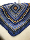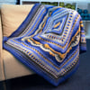 This blanket relies on texture and geometric colour placement to create its impact. The mosaic effect is created using filet mesh stitch patterns on different rounds which then interlock together. This photos show the blanket made in Rowan Pure Wool Worsted yarn which is soft, durable and easy to use!