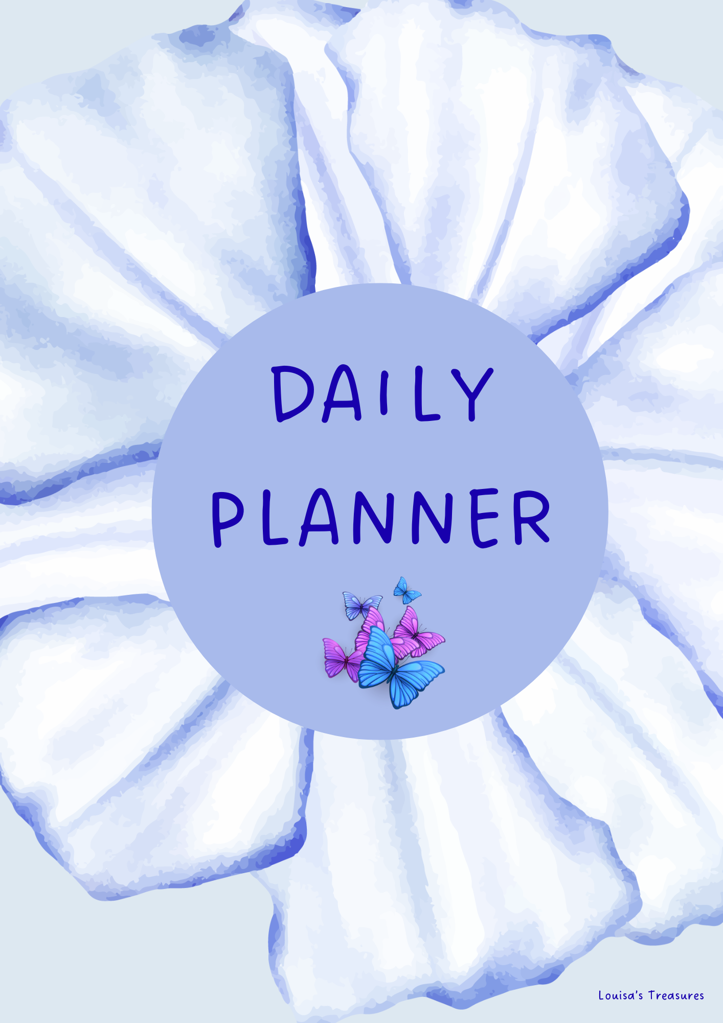 Start each day with a sense of peace using this beautiful Soft Blue Watercolor Daily Planner. Featuring a serene, abstract floral background and a central purple and blue butterfly motif, this printable planner is designed to bring a sense of calm to your organization.