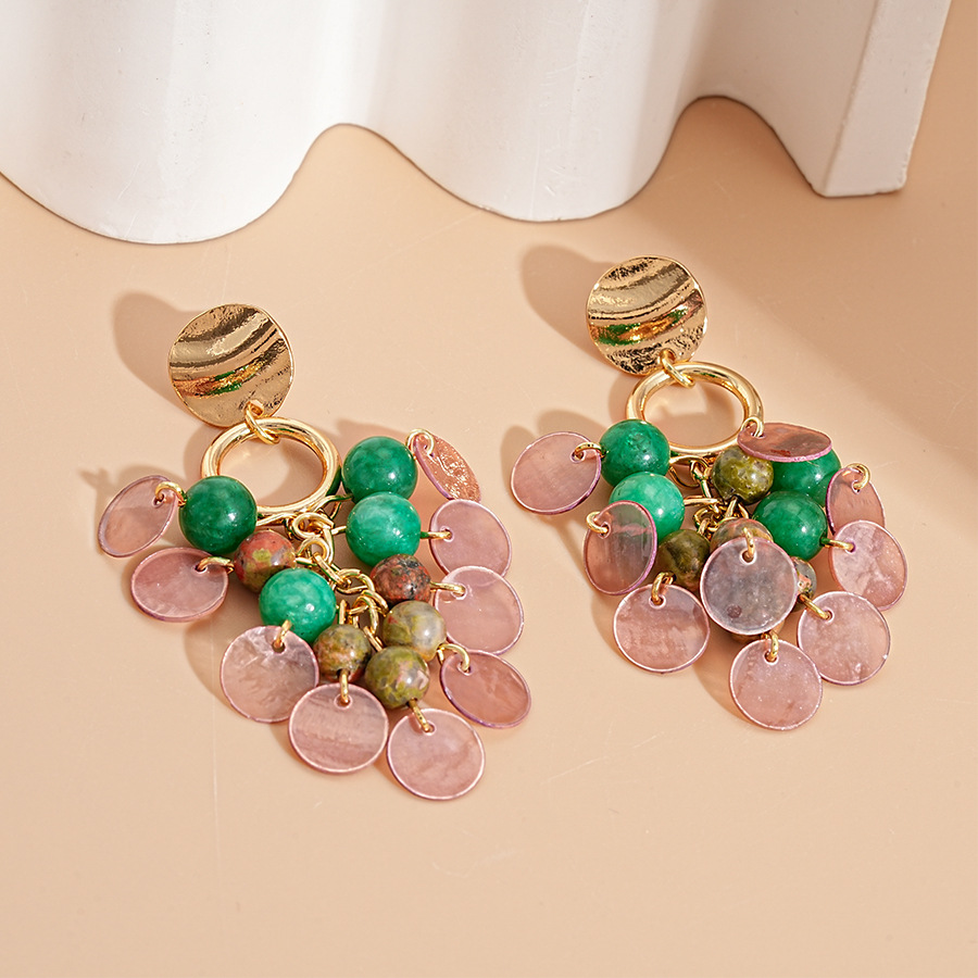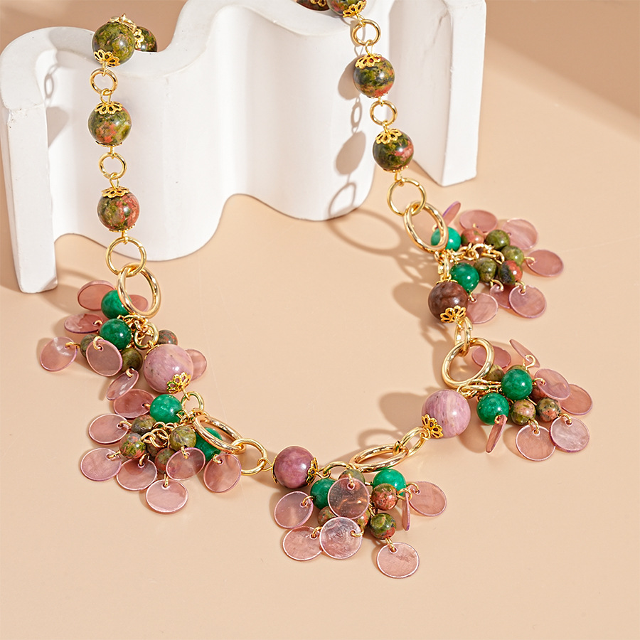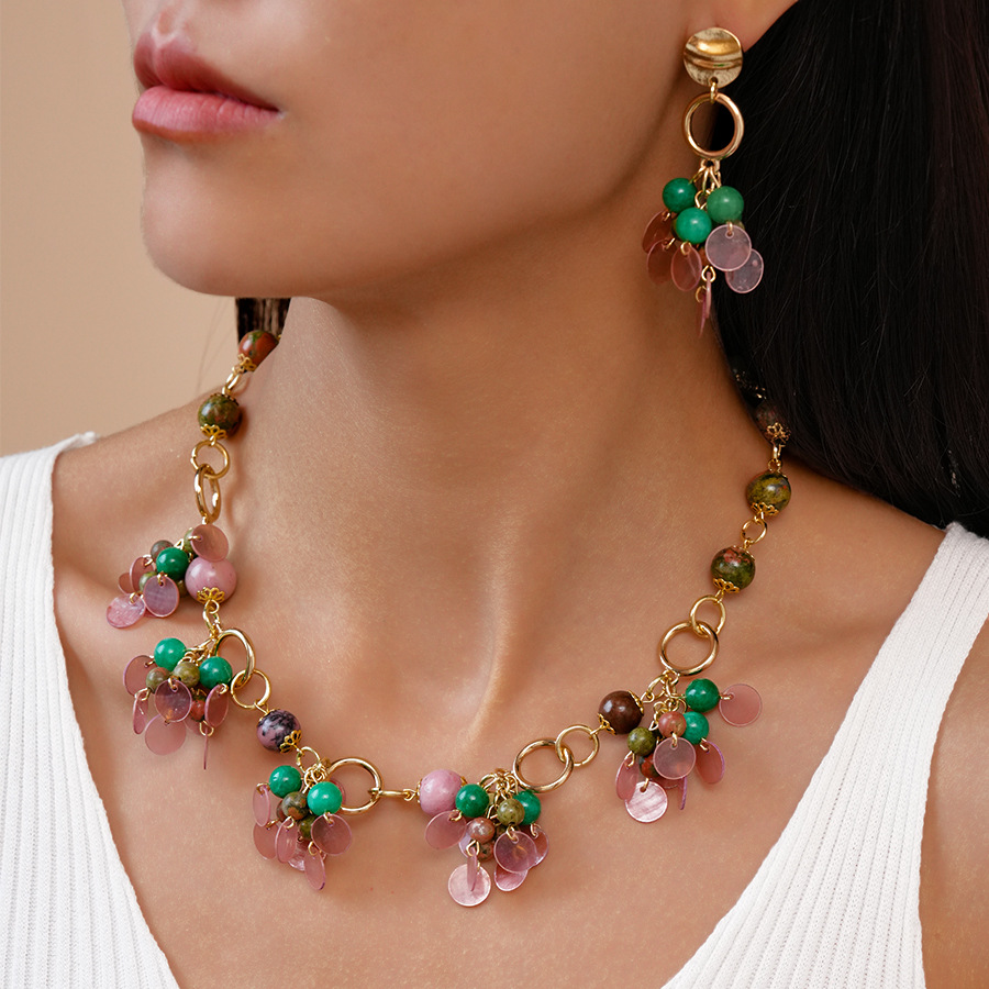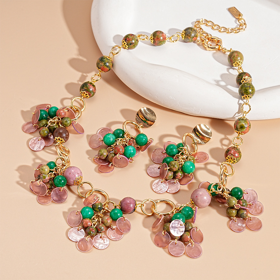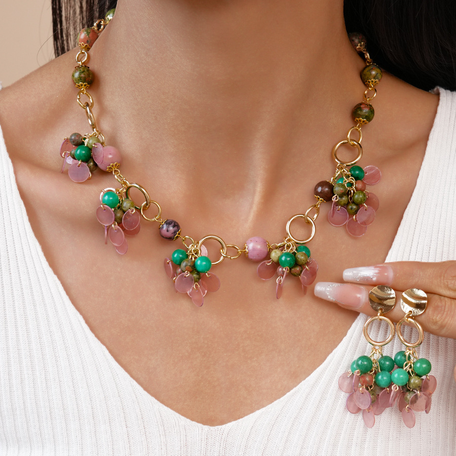 Vintage imitation shell natural stone geometric choker necklace earrings set