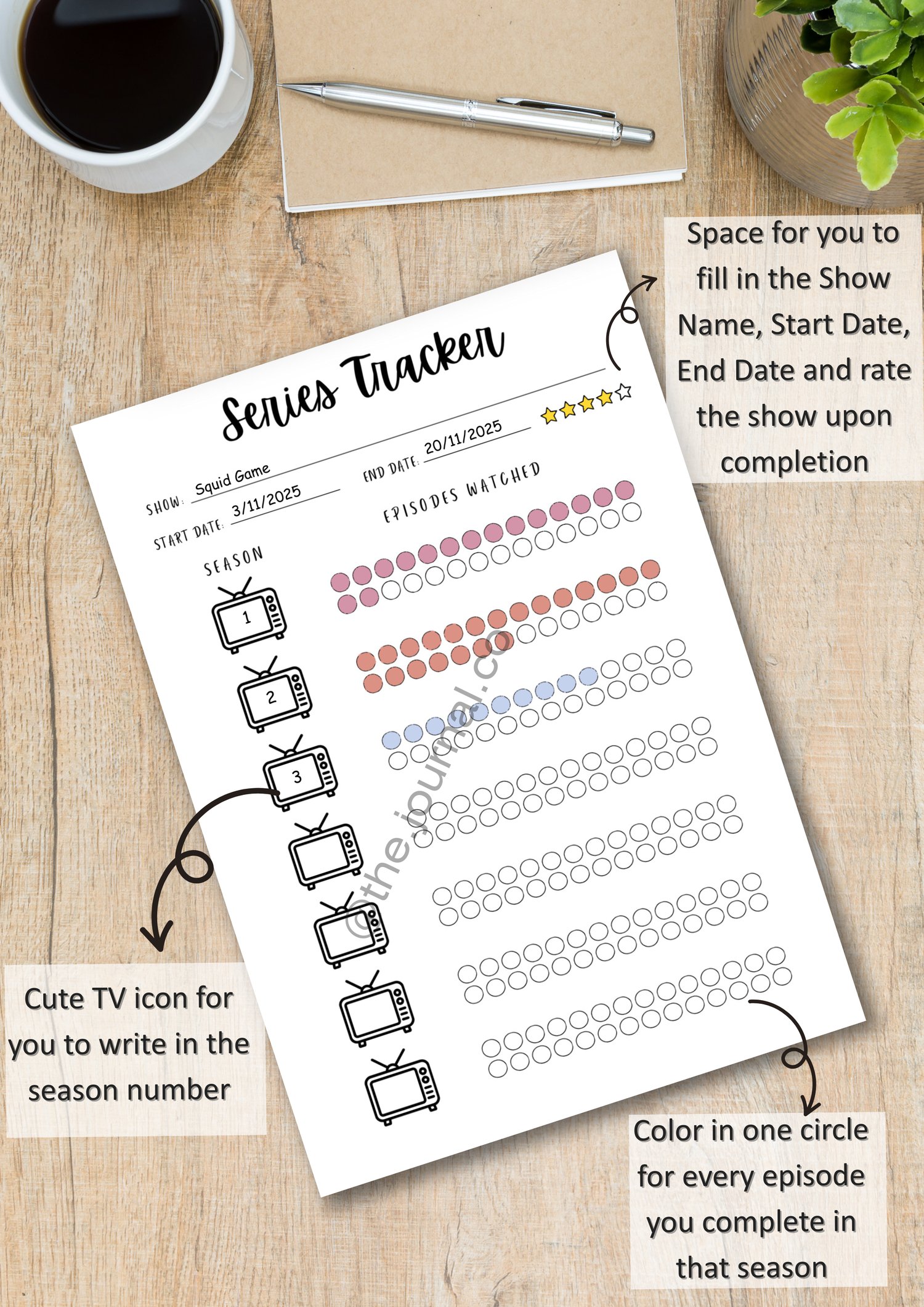 This Series Tracker provides a fun, interactive way to log your viewing journey, track your episode count, and create a satisfying visual keepsake of your binge-watching accomplishments.
