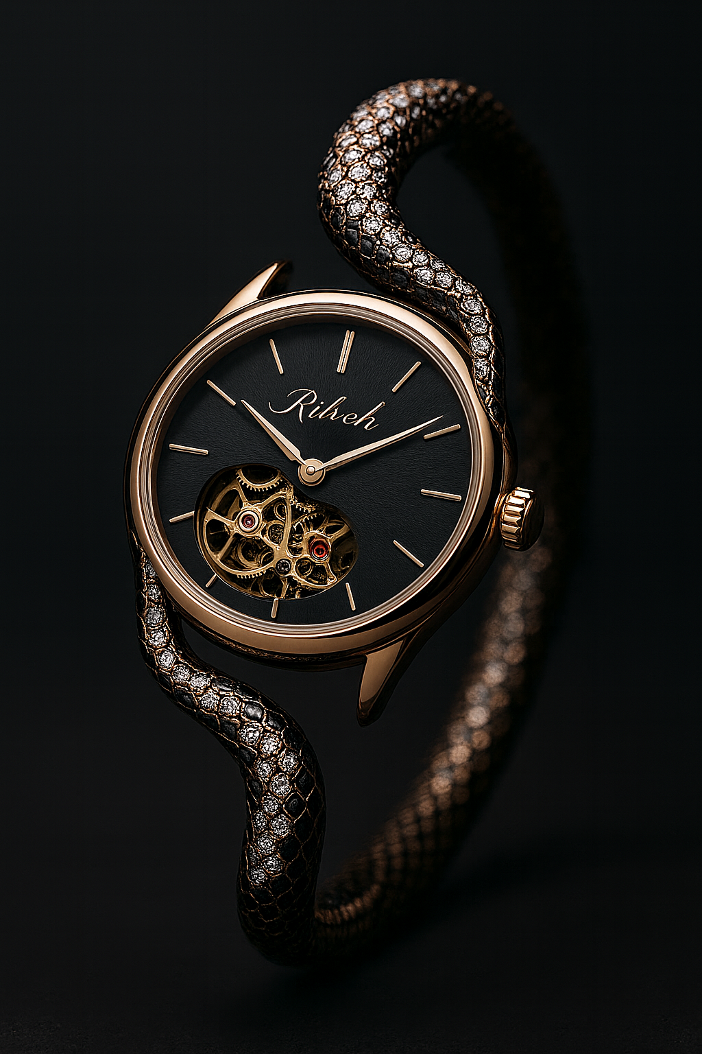 With a serpent-inspired bracelet, diamond accents, and a mechanical heartbeat that never fades, the Auric Veil is more than a watch. It’s a statement.