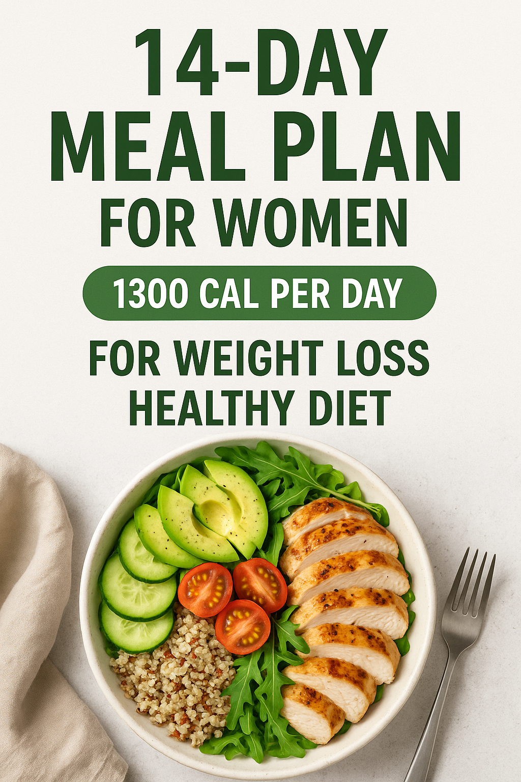 Take the guesswork out of weight loss with this 14-Day 1300 Calorie Meal Plan for Women — a simple, structured, and satisfying way to eat healthy and shed unwanted pounds. Designed specifically for women, this plan provides balanced, nutrient-rich meals that support fat burning, energy, and wellness.