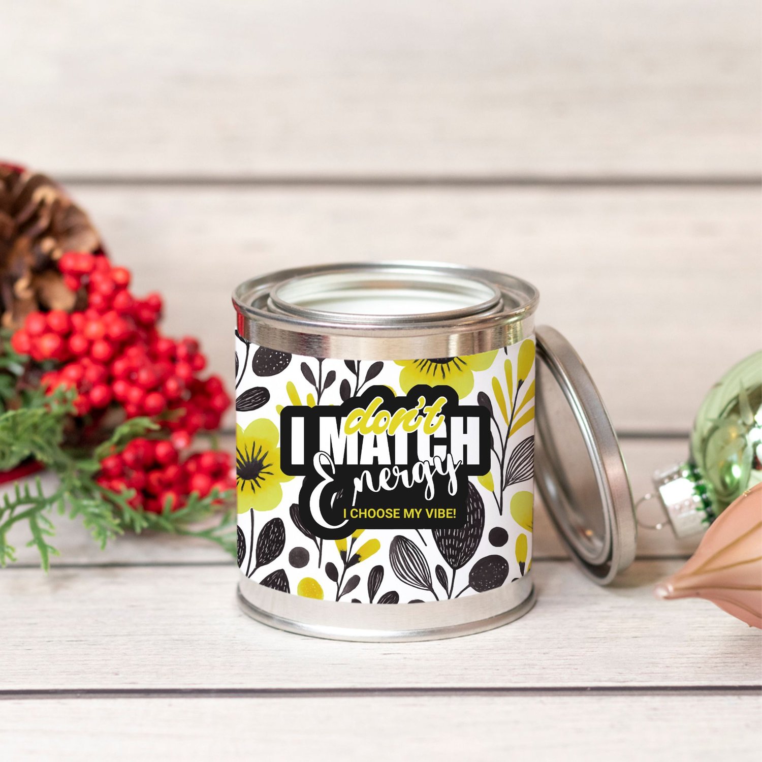 Flicker with intention. This 8 oz hand-poured “I Don’t Match Energy” paint can candle sets the vibe with a soft flame and your choice of calming scent—because peace is personal.