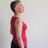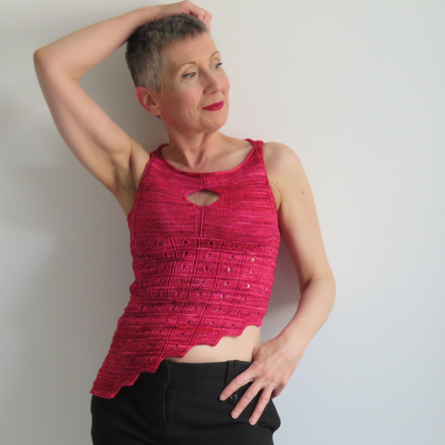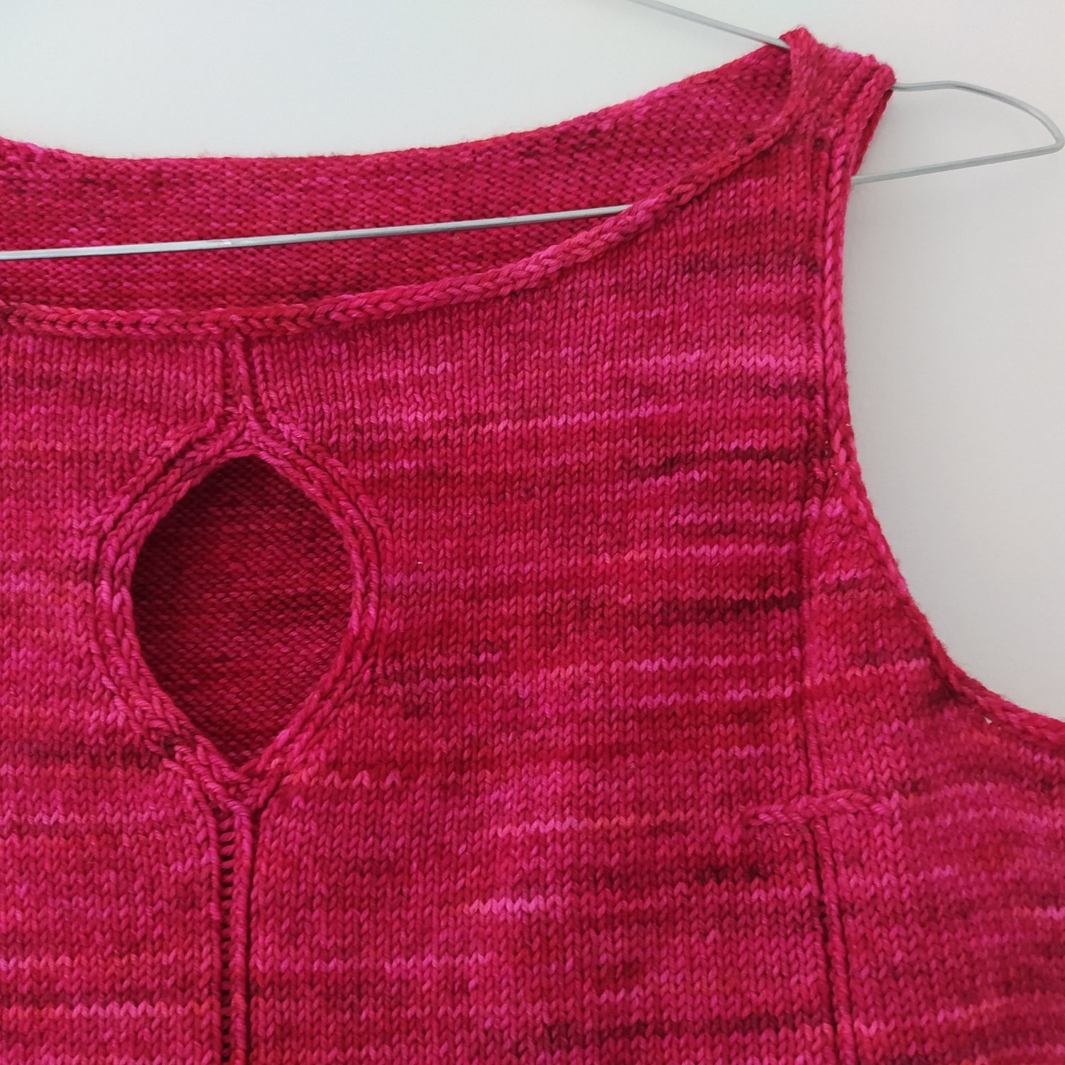 The front starts in the same way, but the straps are slightly longer to allow a more generous neckline, with an optional sexy keyhole shape that closes at the underarm level.