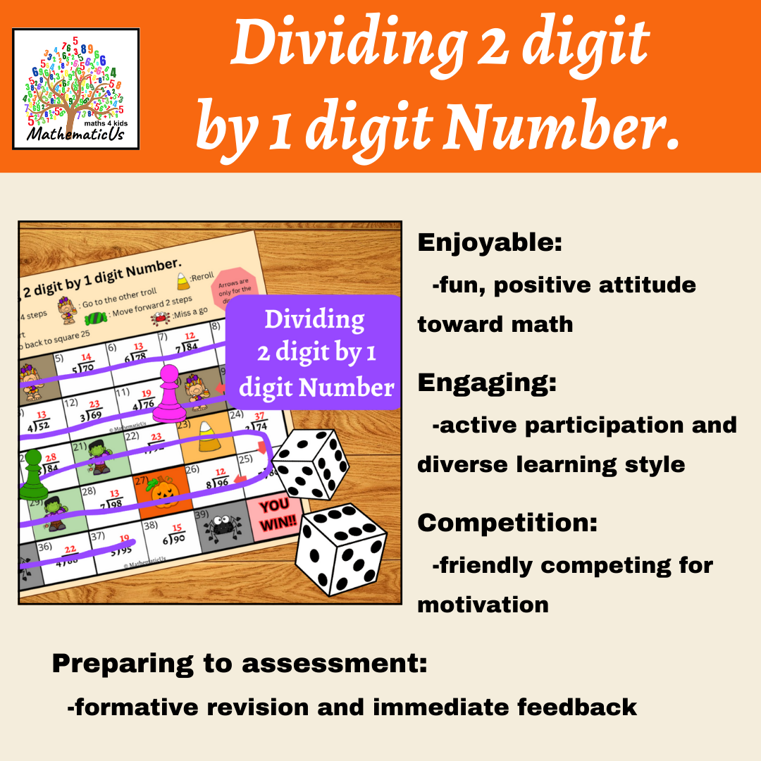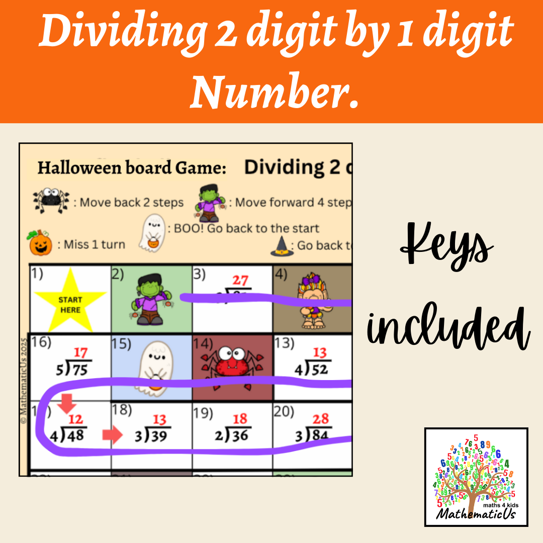 Teaching 2-digit by 2-digit division doesn’t have to be boring! This Halloween Board Dice Game is designed to turn math practice into a fun, interactive adventure. As students roll the dice, move across the spooky game board, and solve multiplication problems, they stay motivated and focused while building accuracy and fluency.