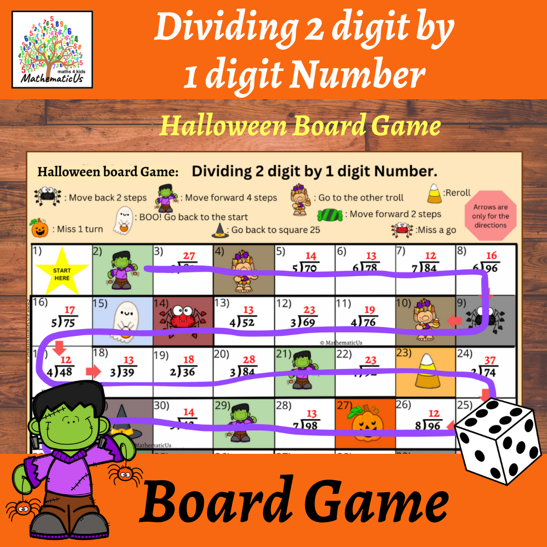 - Multiplying 2 digit Numbers Halloween Board Dice Game