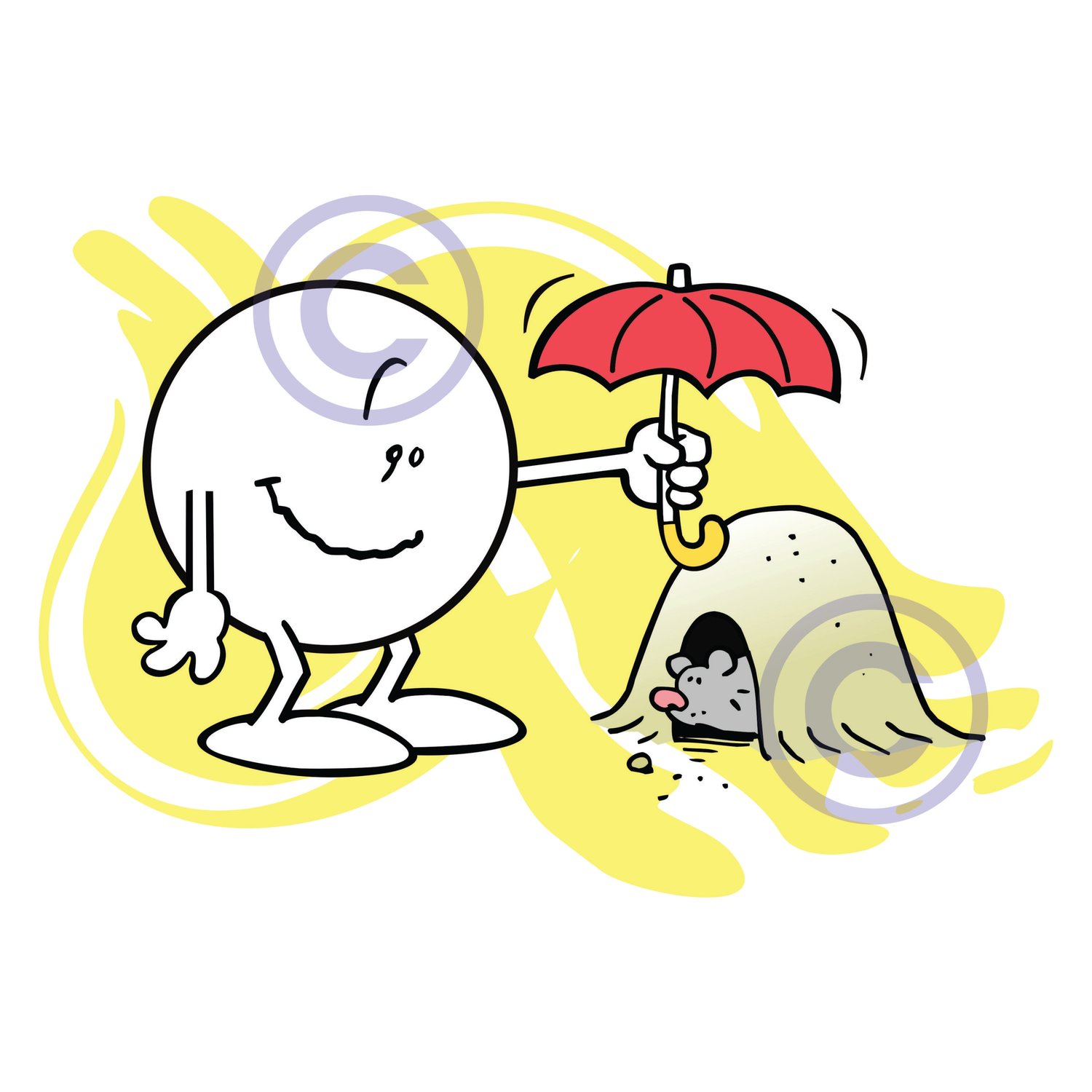 Moodie holding umbrella over groundhog