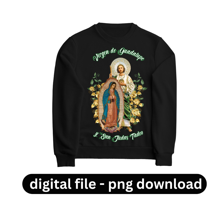 Virgencita y San Judas logo digital png file / San Juditas t-shirt portrait png design / DTF transfer file