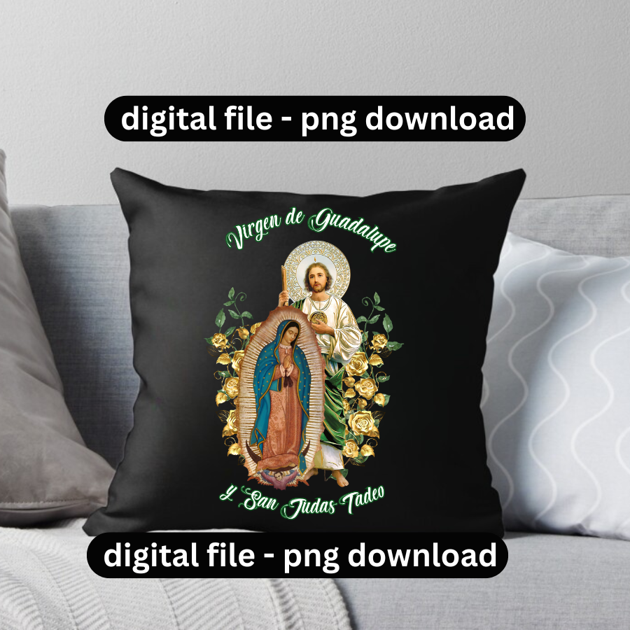 Virgen de Guadalupe y San Judas Tadeo logo digital png file / Saint Jude design / t-shirt portrait png design / DTF transfer file / Print and cut / Ready to print transfer file / transparent background.