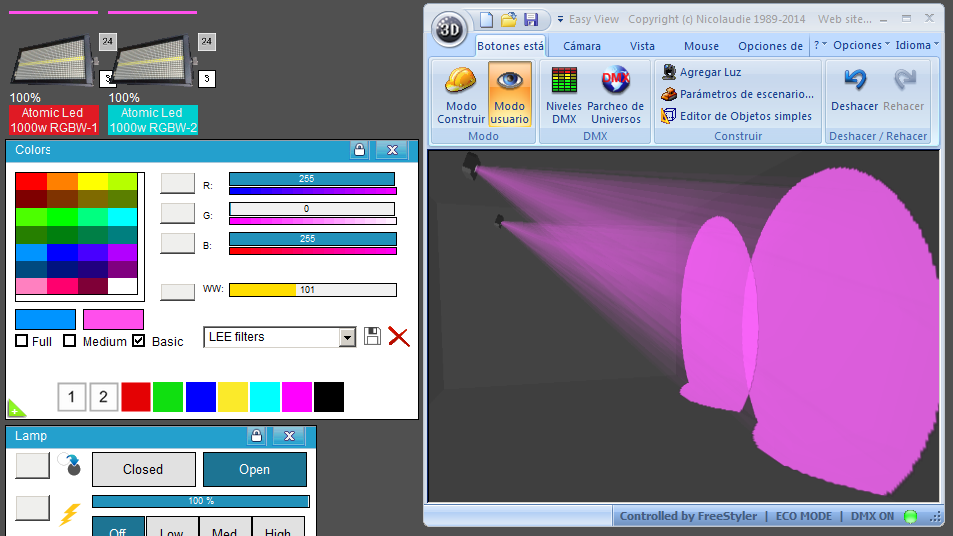 Esta Librería SSL2 está optimizada para trabajar con Magic 3d Easy View. Es decir para ver una representación 3D de las secuencias que estemos realizando con Freestyler, QLC+ o cualquier otro soft que se conecte con Magic 3d.