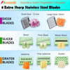 8 Interchangeable Blades: Includes 8 versatile blades for slicing, dicing, chunking, shredding, grating, and chopping vegetables, fruits, and cheese. Rust-resistant stainless steel ensures sharp, smooth cuts every time. Perfect for onions, potatoes, salads, and more.