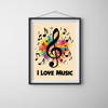 Transform your space into a vibrant symphony of color and sound with this stunning "I Love Music" wall art. Bursting with energy, this piece features a bold treble clef surrounded by an explosion of vibrant, artistic splashes. Perfect for music lovers and creative souls alike, this artwork speaks to the heart's rhythm and the mind's imagination.
