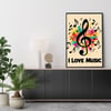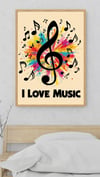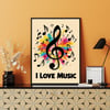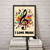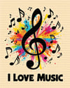 Colorful Music Wall Art, I Love Music Poster, Treble Clef Digital Art Print, Music Room Decor, Digital Print, Instant Download, 30 JPG Sizes