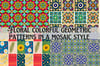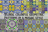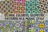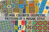 Floral colorful geometric patterns in a mosaic style, Abstract colorful doodle patterns in a mosaic style. Floral and Polka Background, Colorful floral doodle digital paper, Modern floral design digital paper, colorful Background.